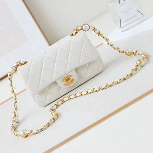 25C Mini Flap 24cm Pelle di agnello bianca Cuore dorato Hardware