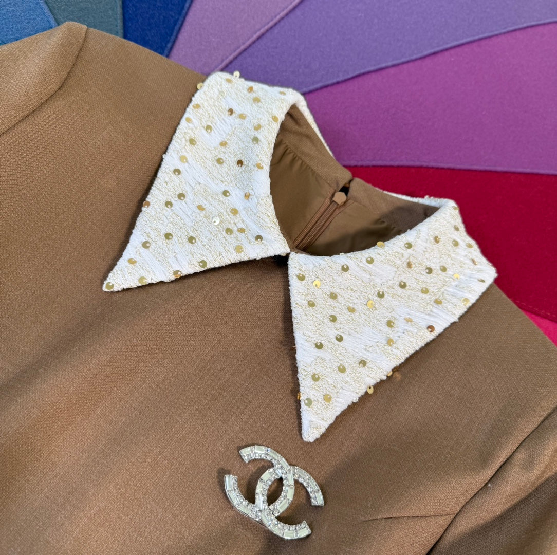 CC 25 Abito a trapezio a maniche lunghe in poliestere marrone