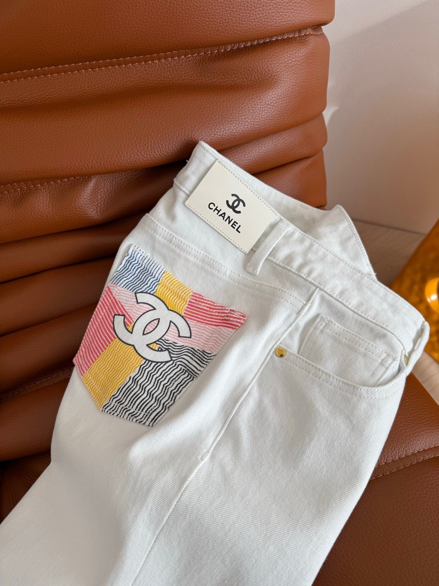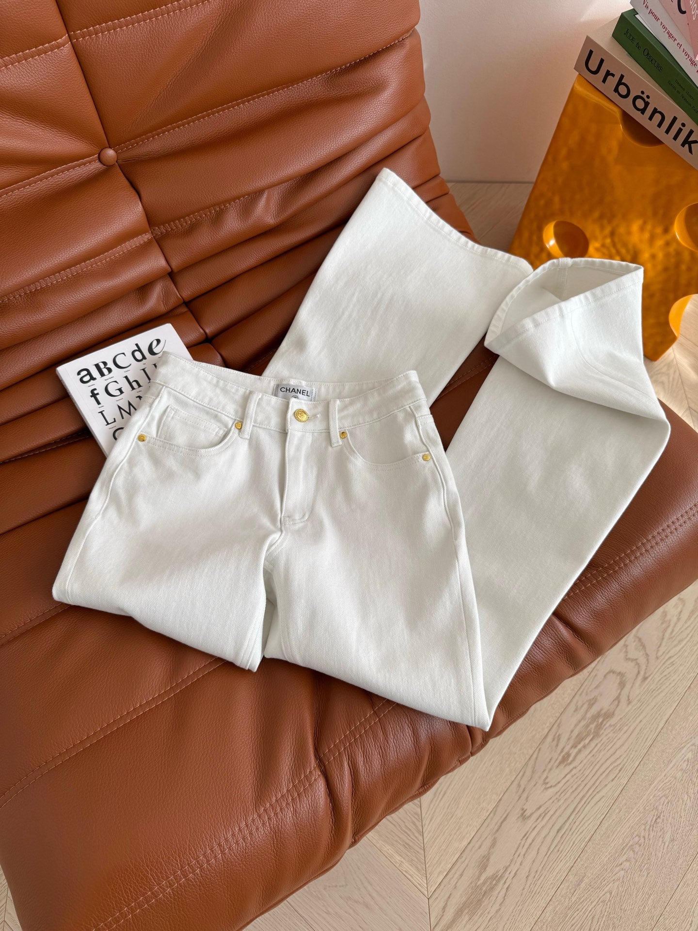 CC 25 Jeans svasati Tessuto elastico bianco