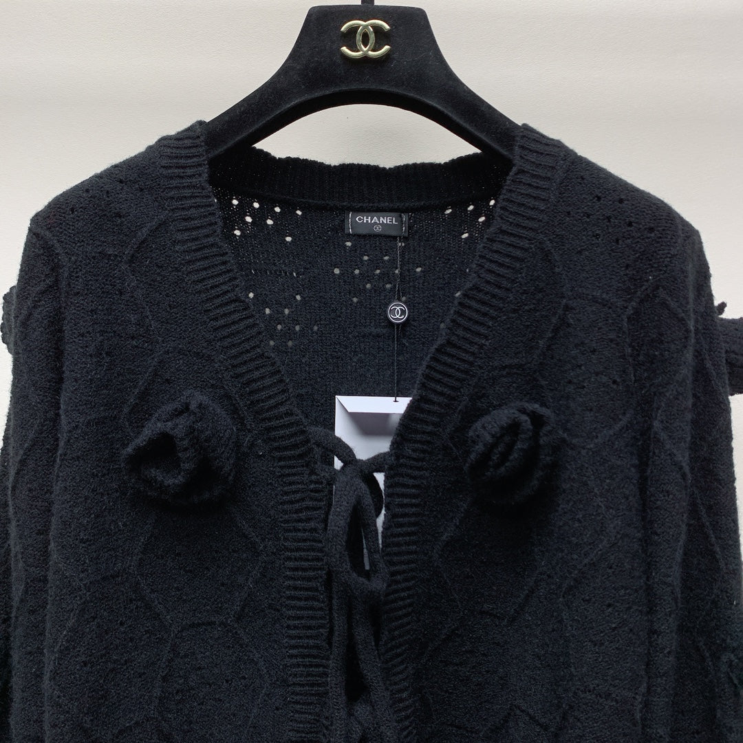CC 25 Cardigan lavorato a maglia con motivo floreale tridimensionale in nero 277589