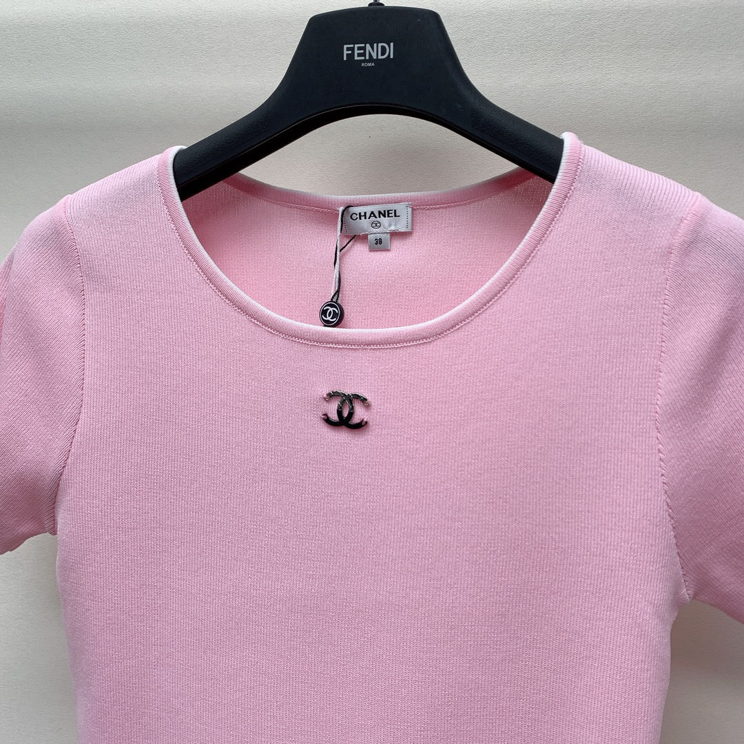 Maglia girocollo in maglia con logo ricamato CC 25 rosa 277580