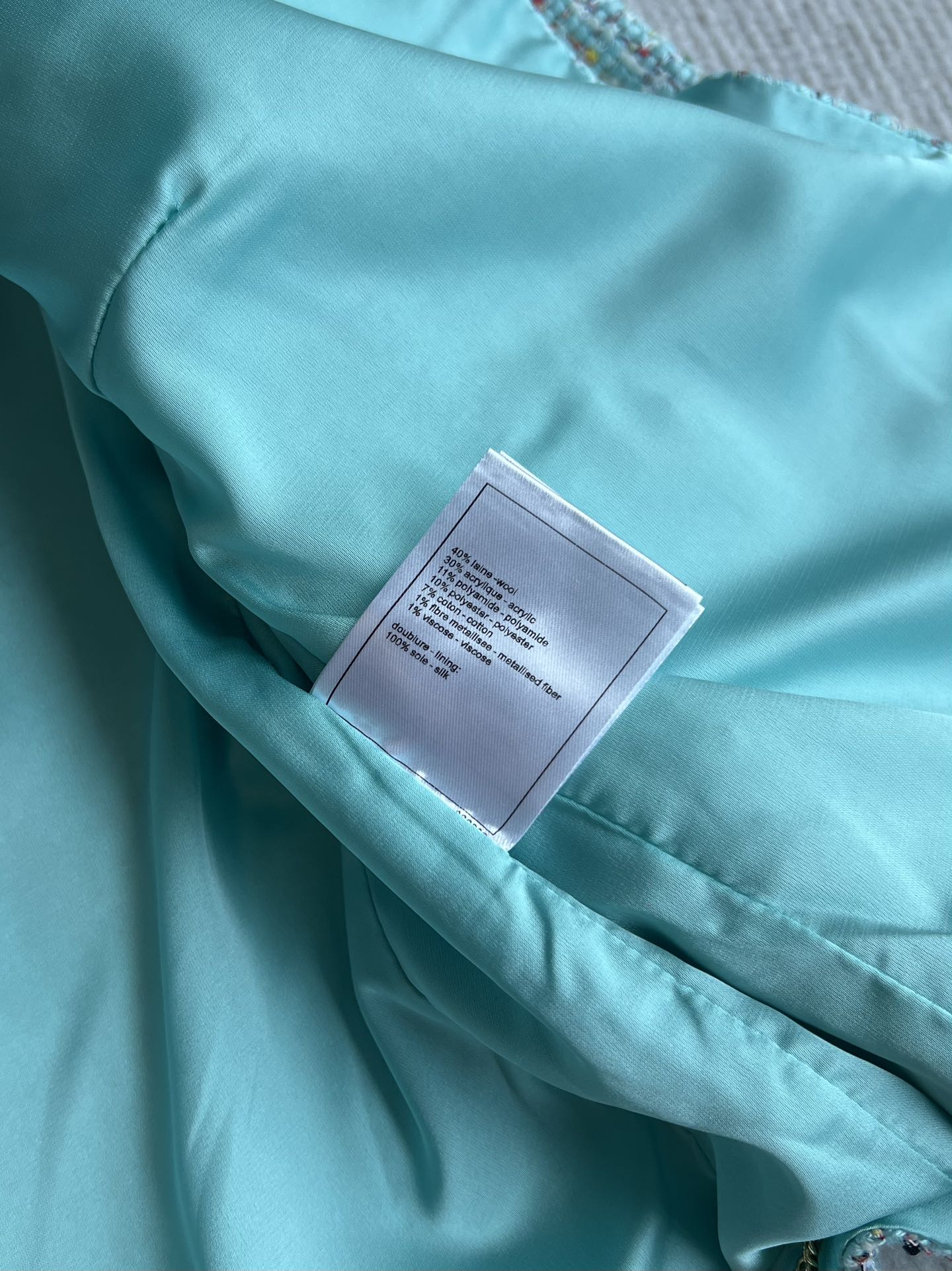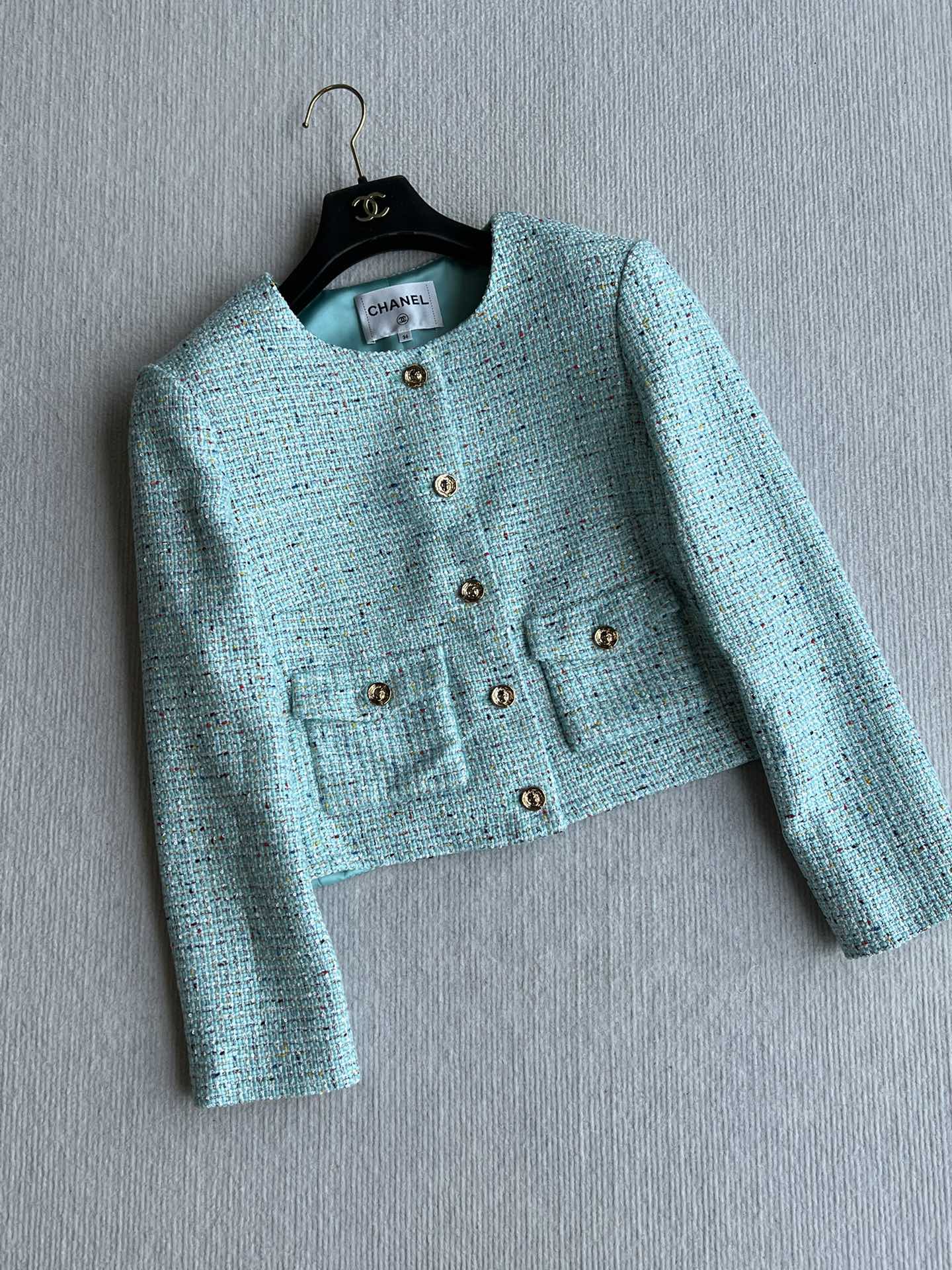 Cappotto slub a collo tondo CC 25 in tweed blu-verde 275793