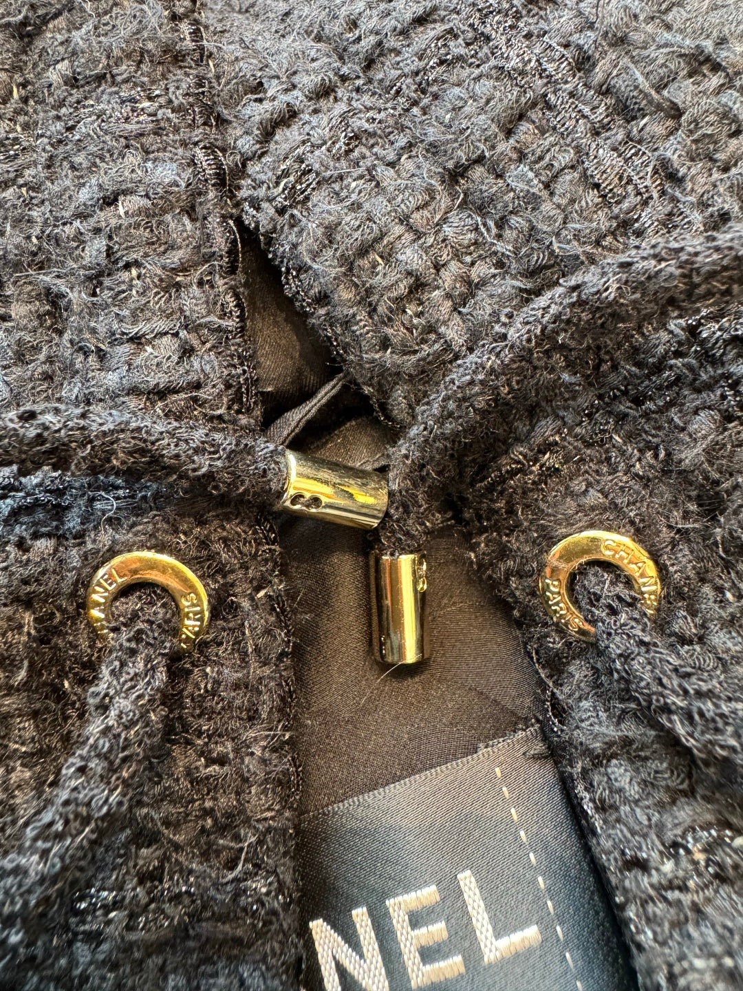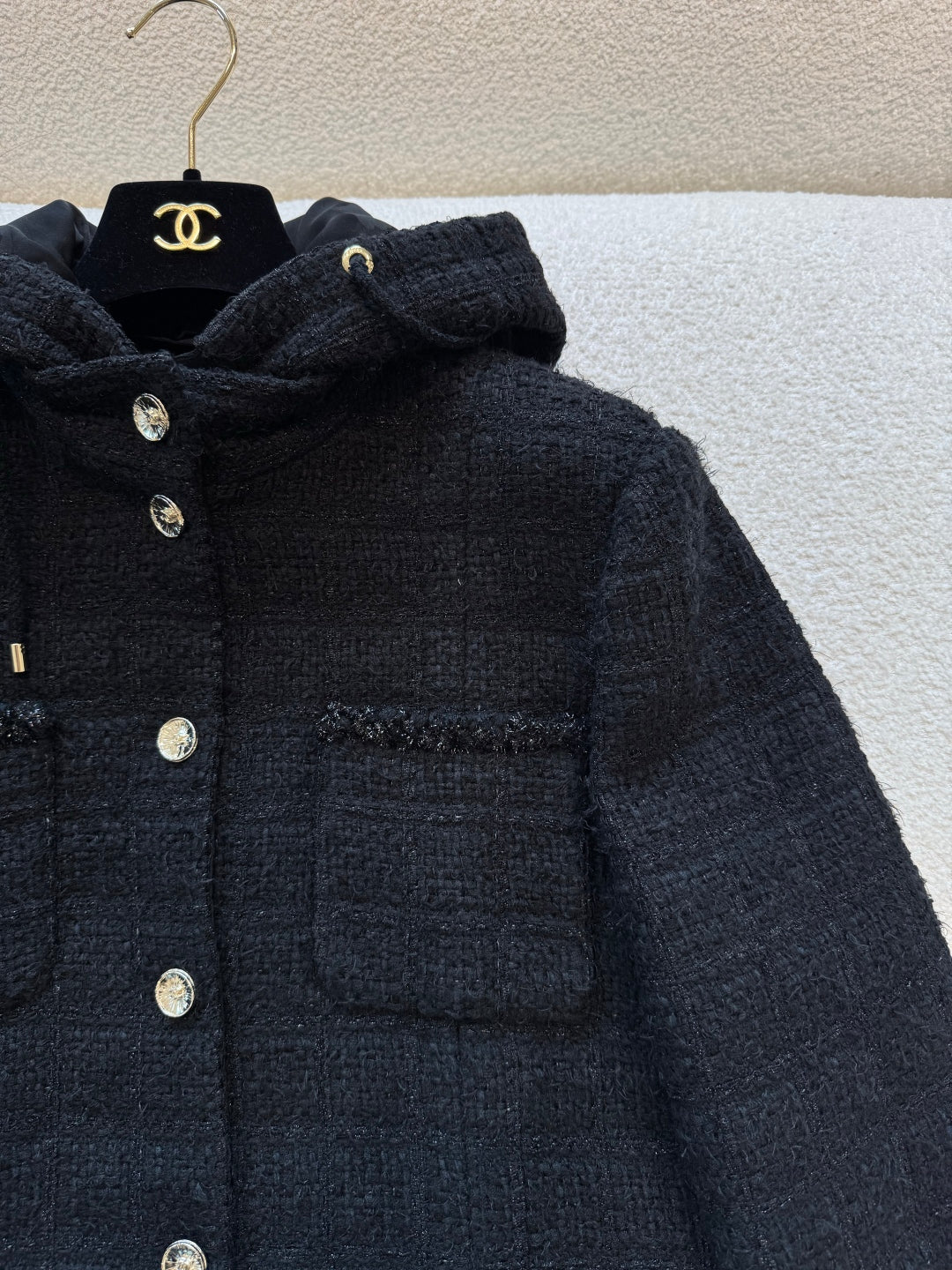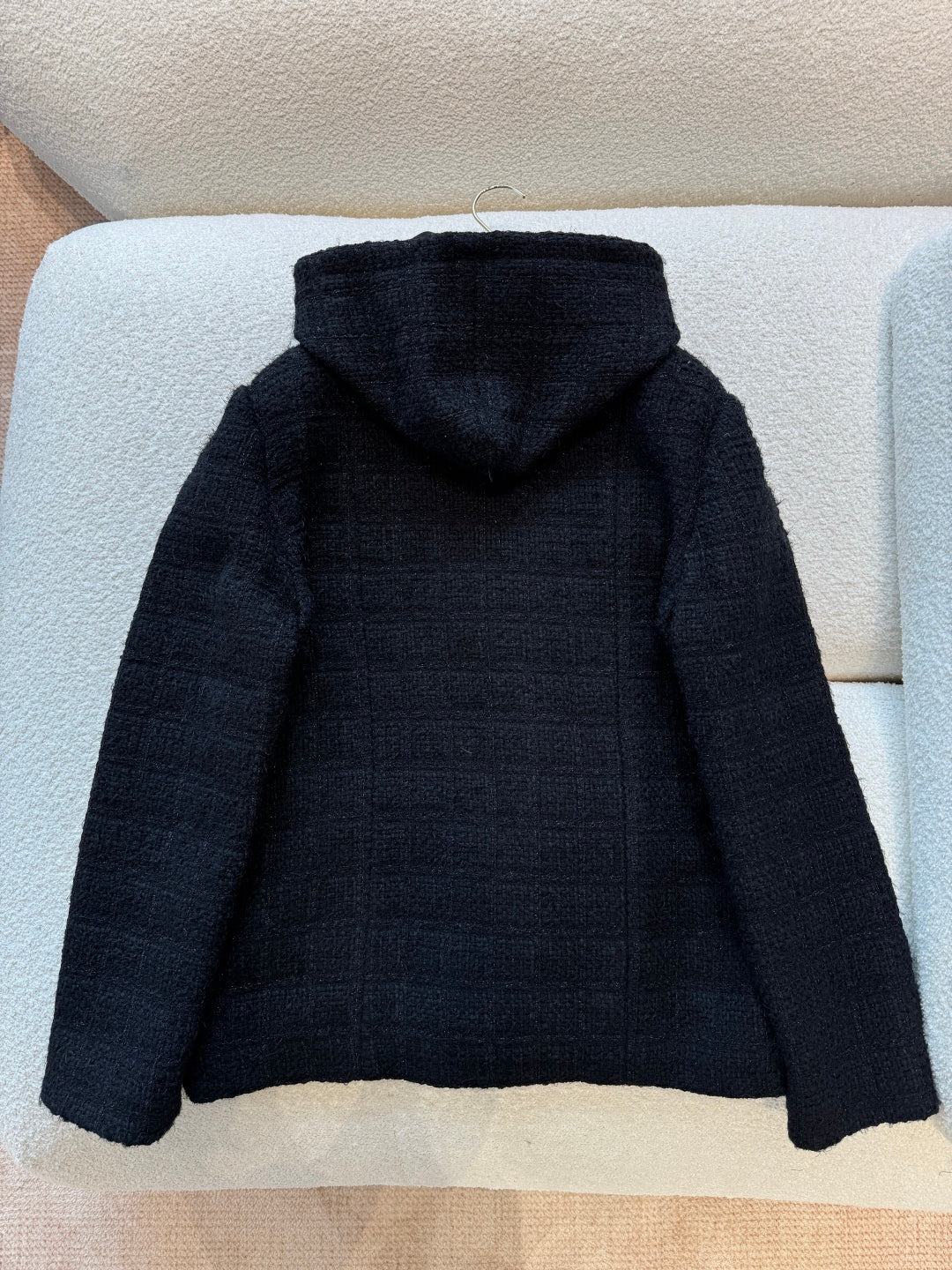 Giacca in tweed con cappuccio a quadri neri CC 25B