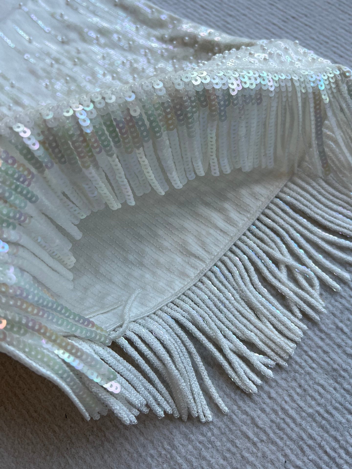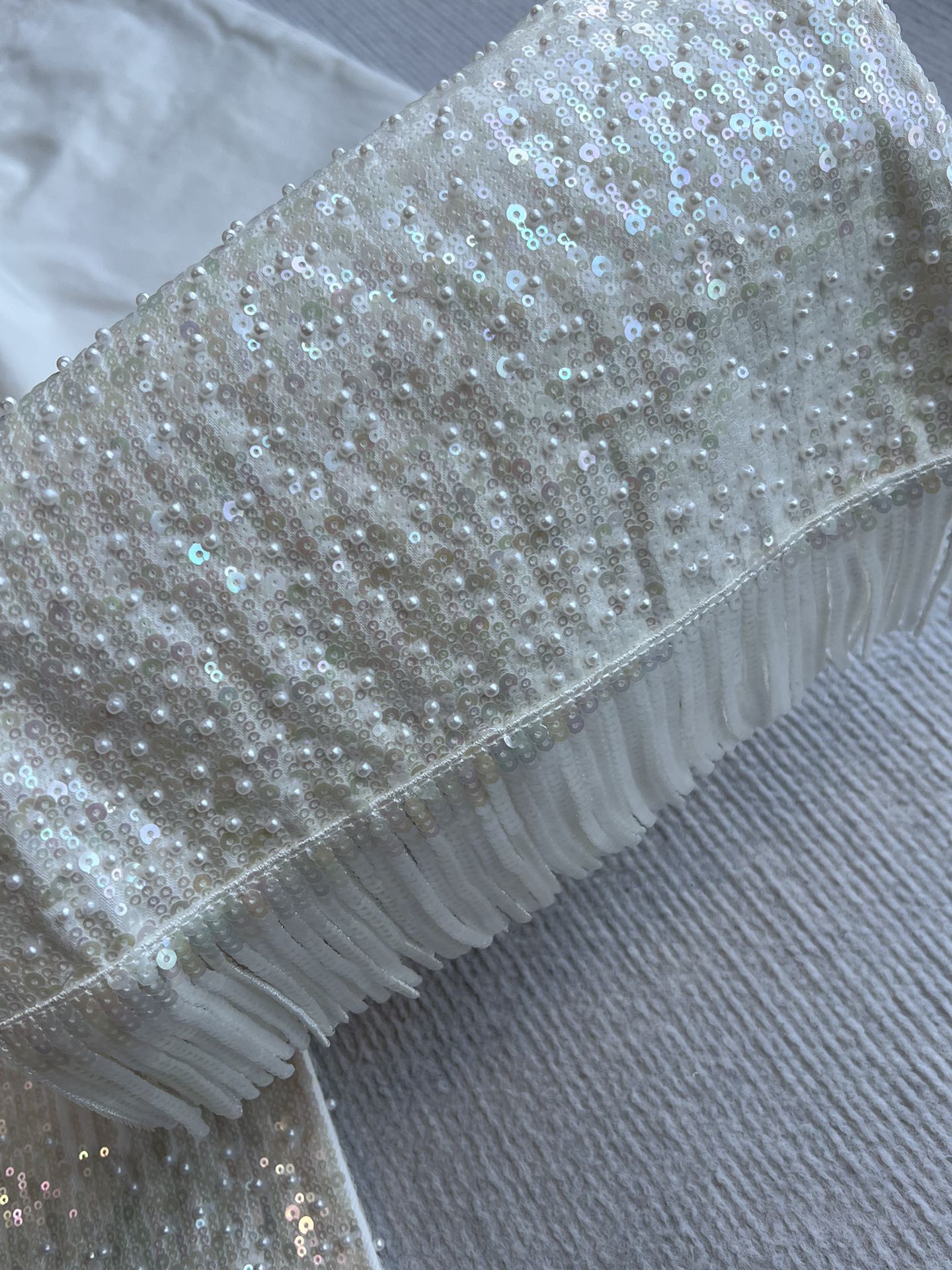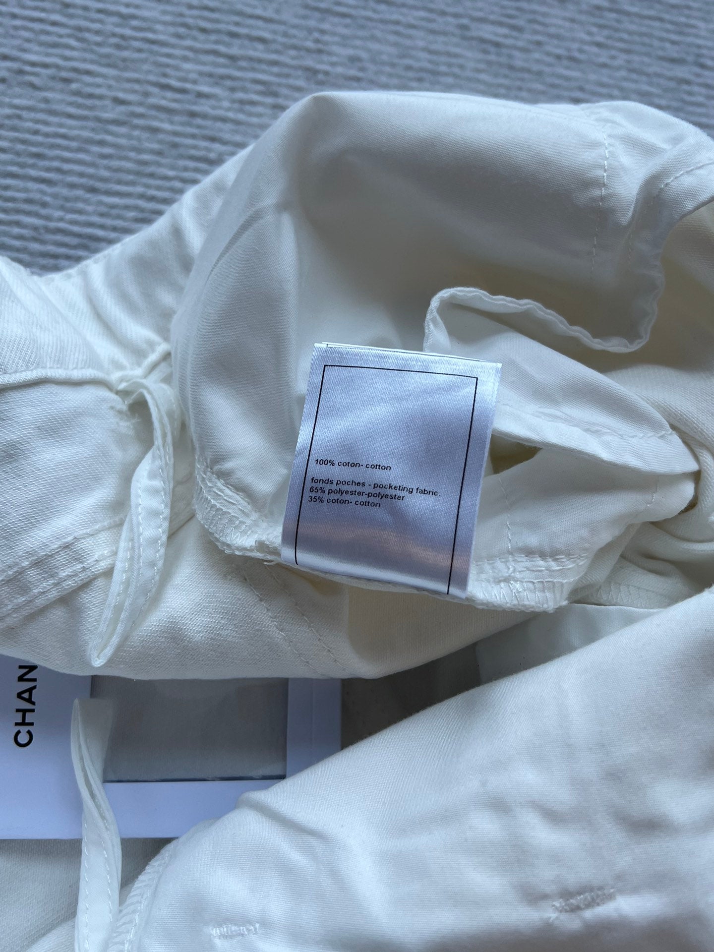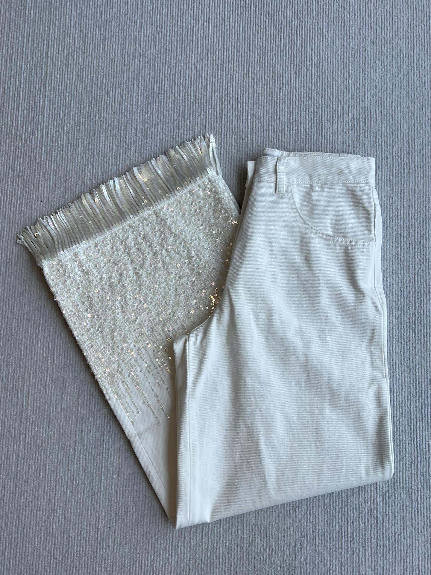 Pantaloni a gamba larga con perline e nappe in denim bianco CC 25SS 277238