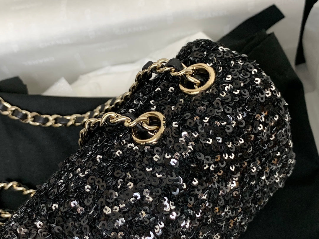 Borsa a patta 25C 20 cm in pelle di vitello con paillettes argento e pois neri