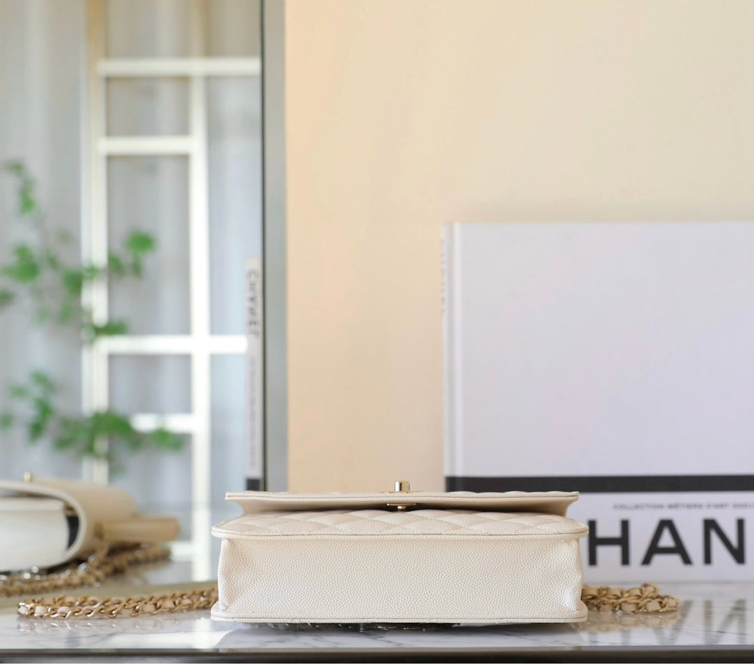 CC 25C Borsa a mano 18 cm in pelle di vitello martellata color crema