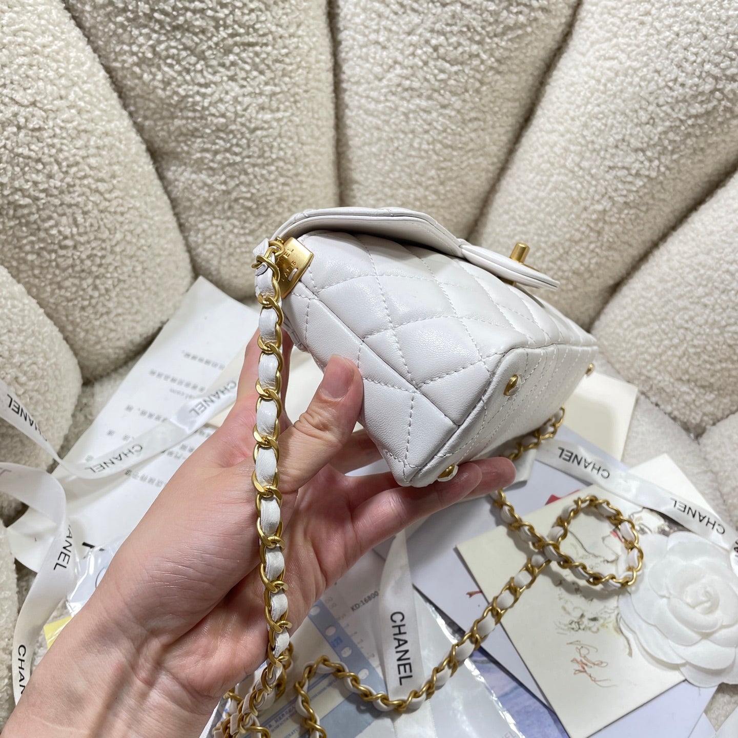 Borsa a tracolla CC 25P Mini Flap Bag 22 cm Manico superiore Pelle di vitello color crema Hardware dorato