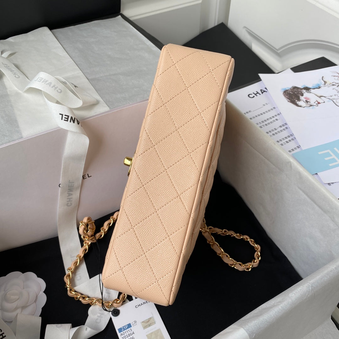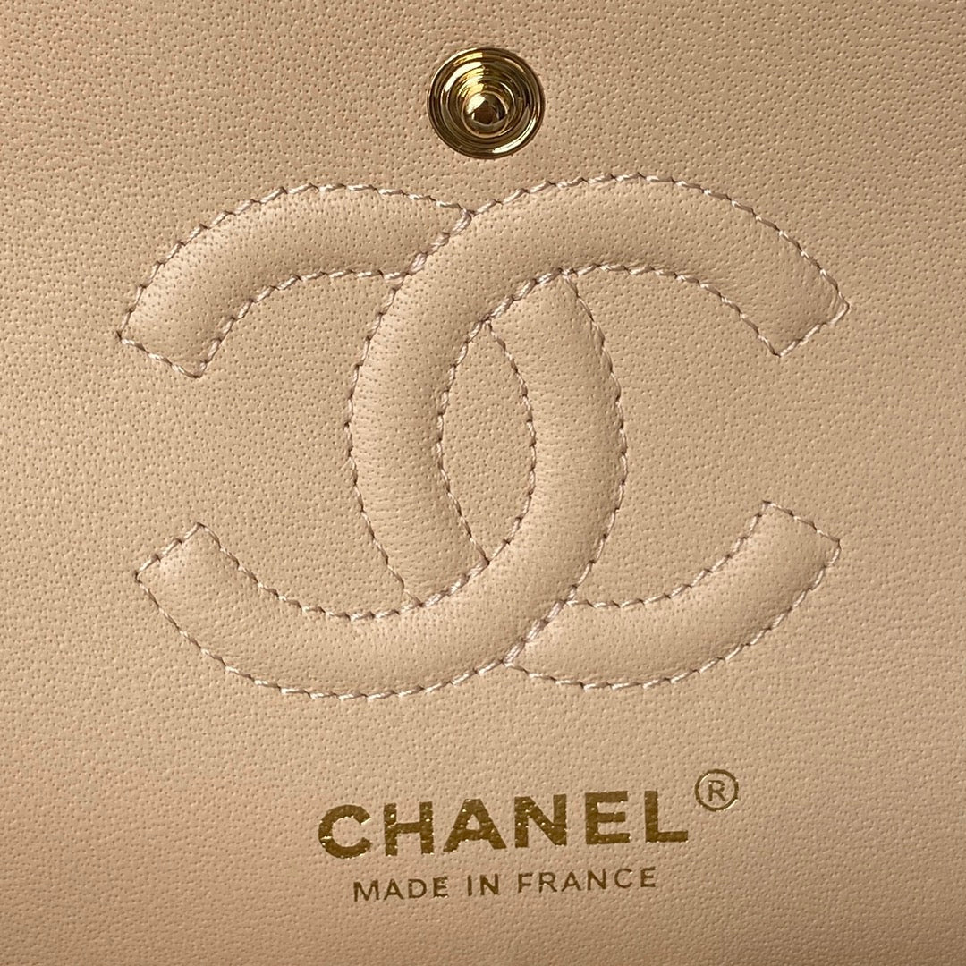 Borsa media classica con patta 23 cm color salmone e caviale, finiture dorate