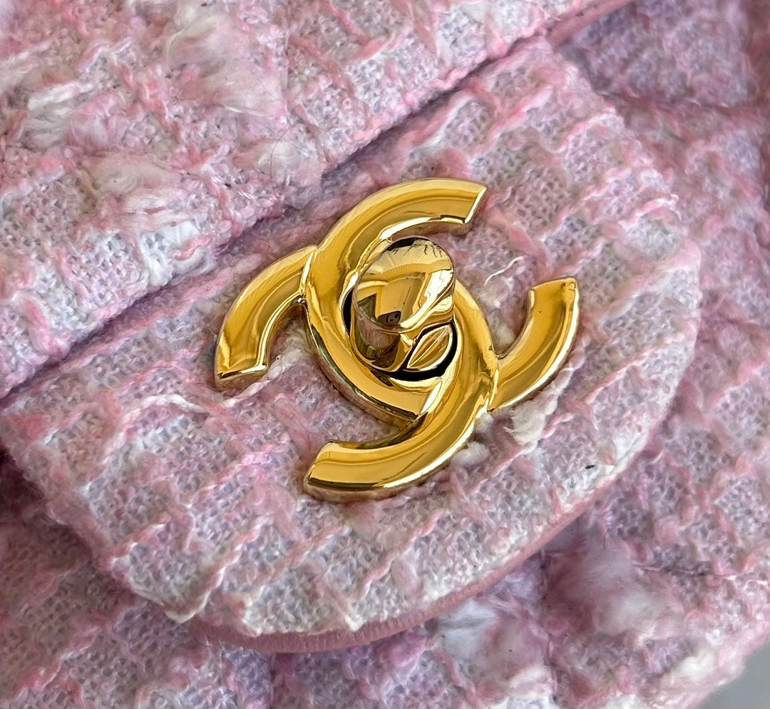 MINI BORSA A PATTA 20 IN TWEED ROSA CHIARO CON FERRAMENTA ORO