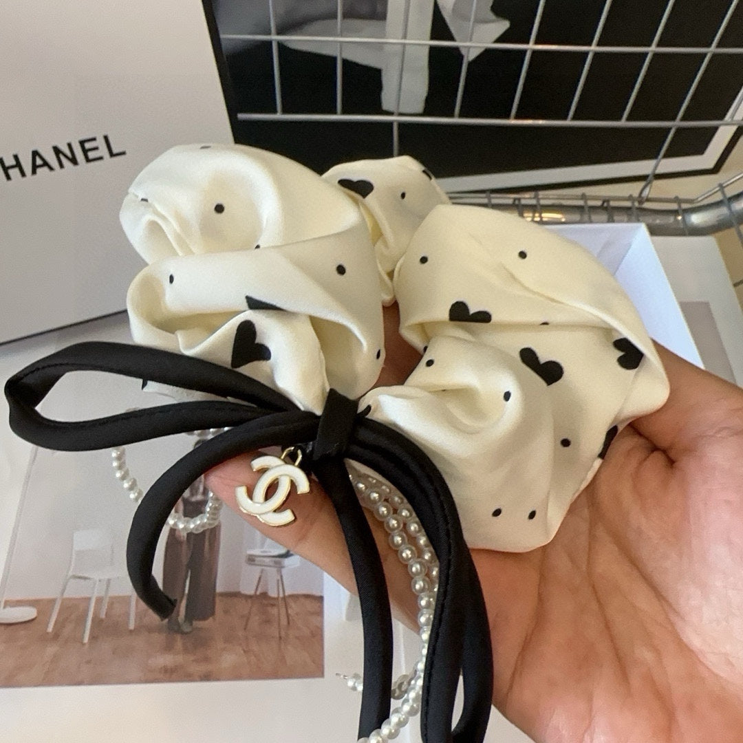 Elastico per capelli in tessuto stropicciato bianco crema 432902