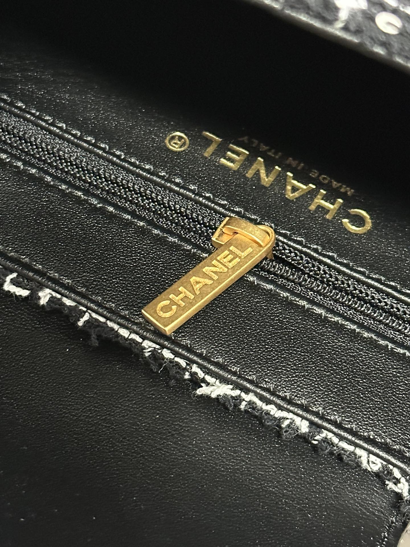 BORSA SHOPPING KELLY 19 IN TWEED BIANCO E NERO CON FERRAMENTA ORO