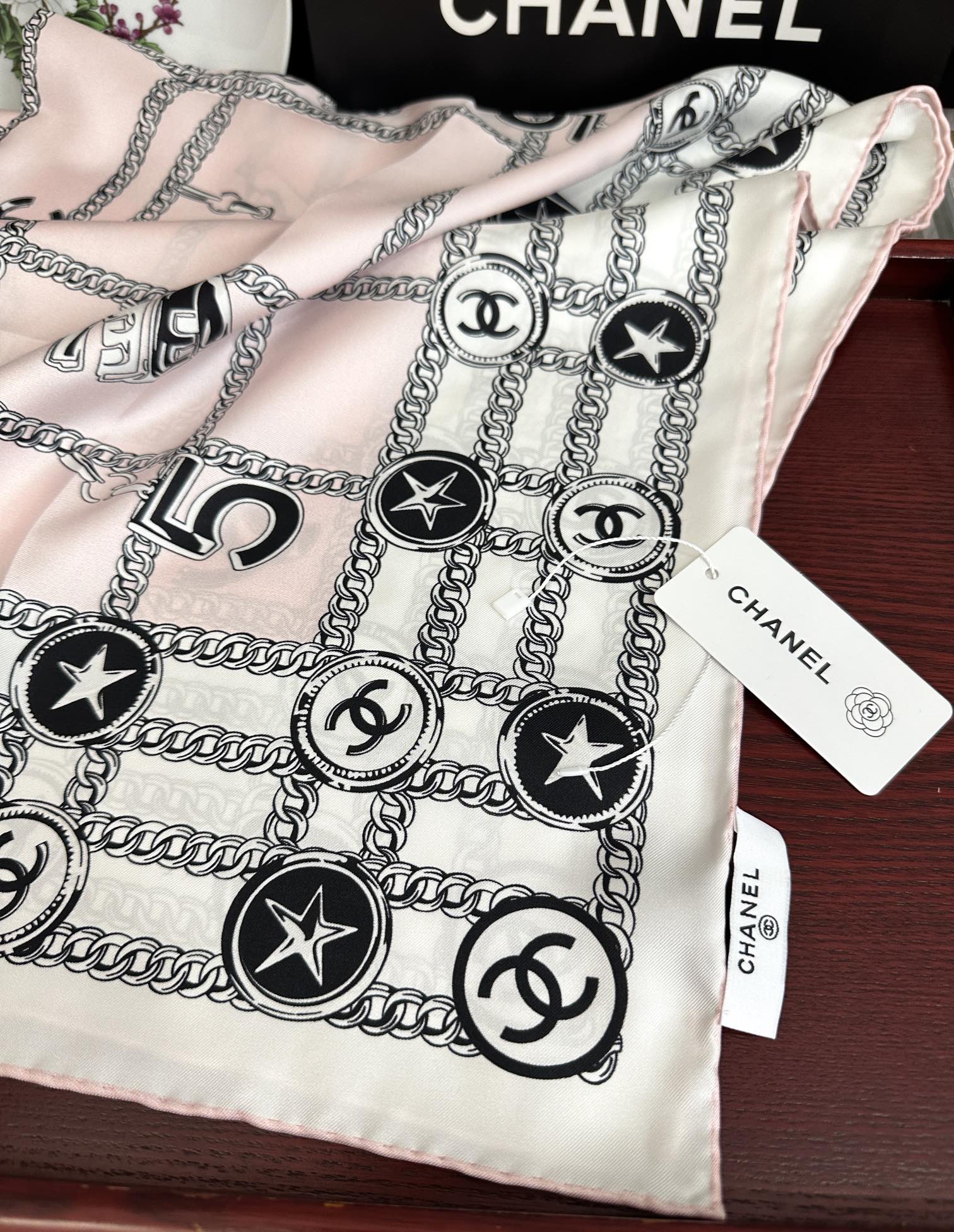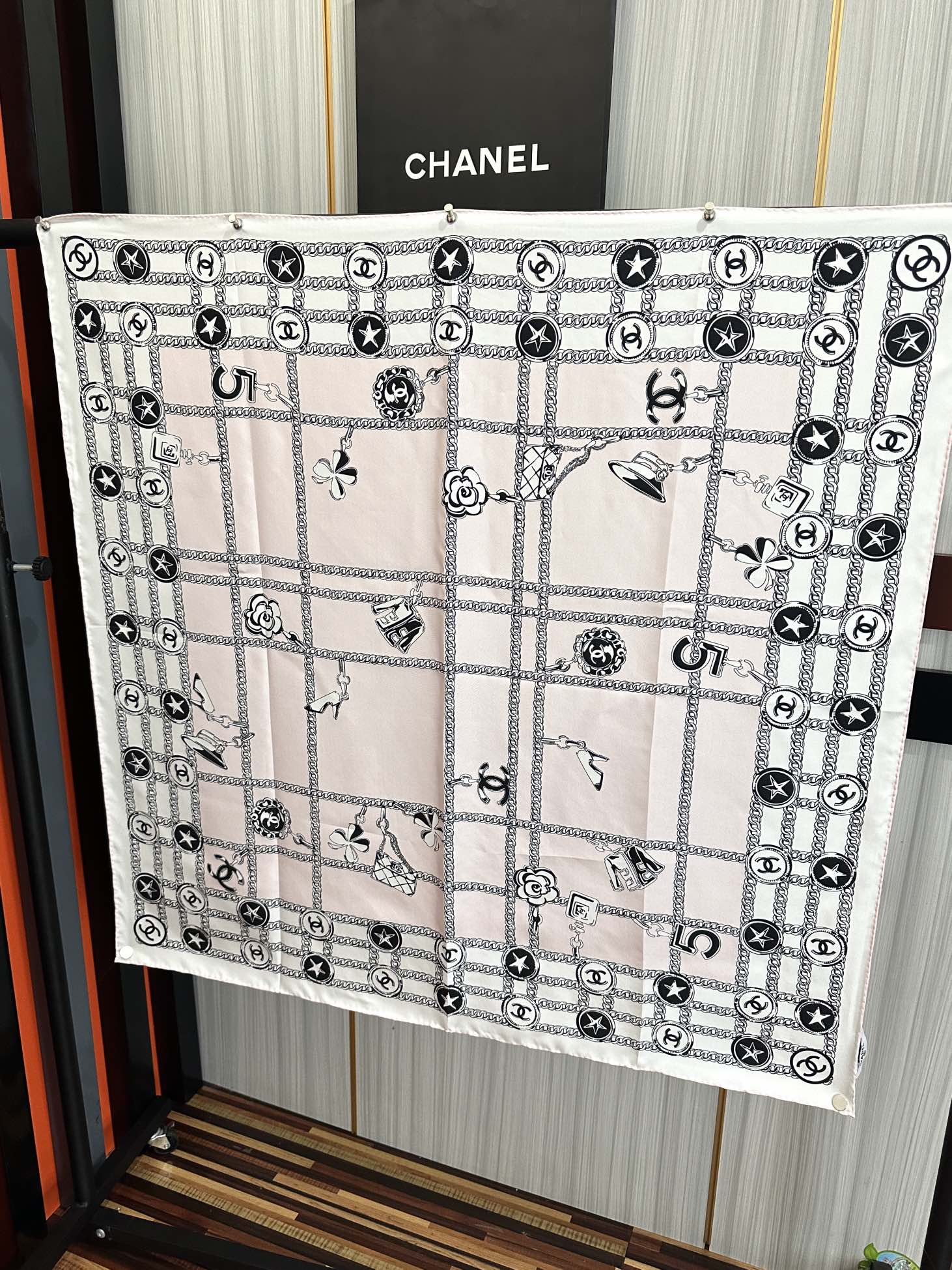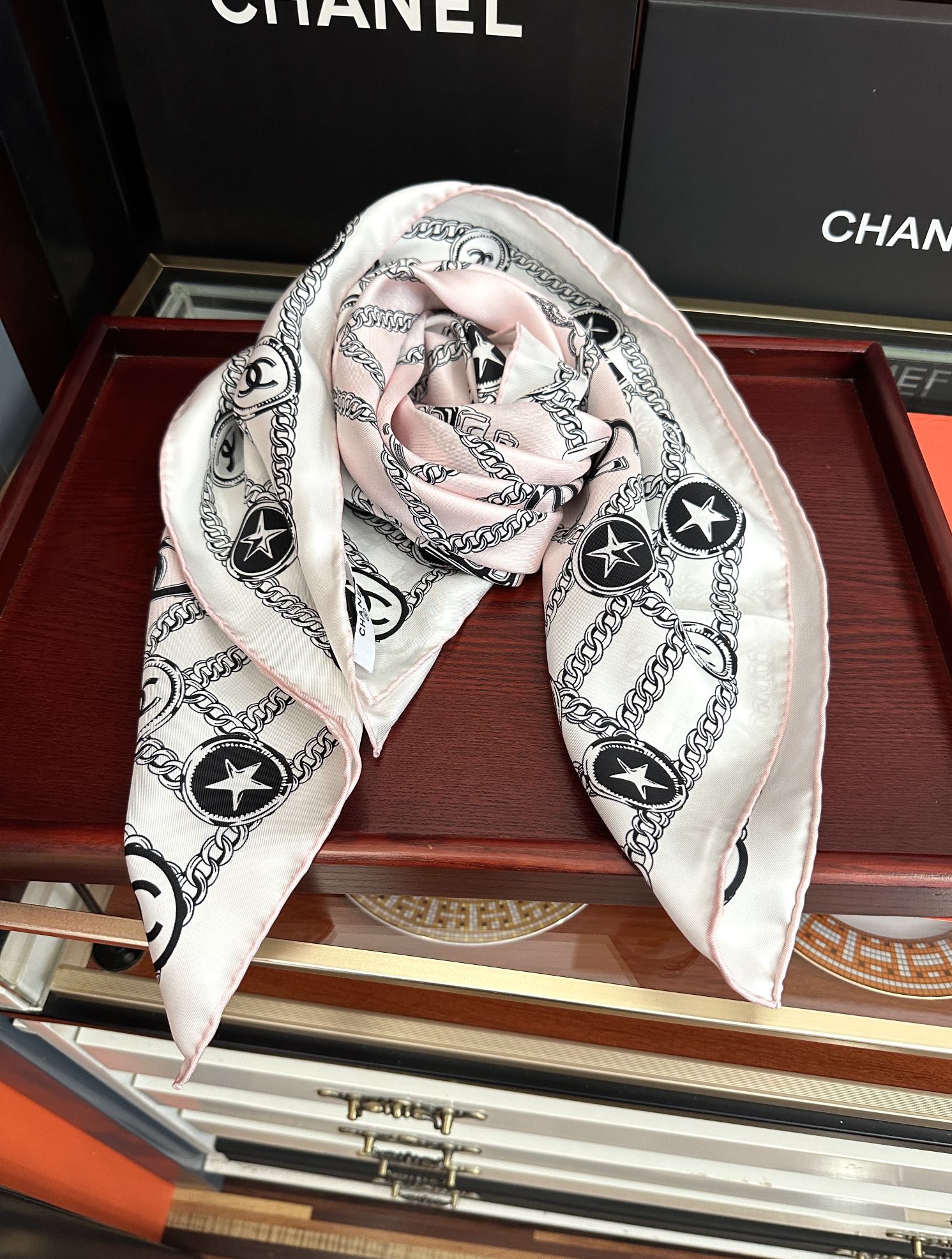 Sciarpa quadrata in seta rosa e bianca CC 90 cm 828798