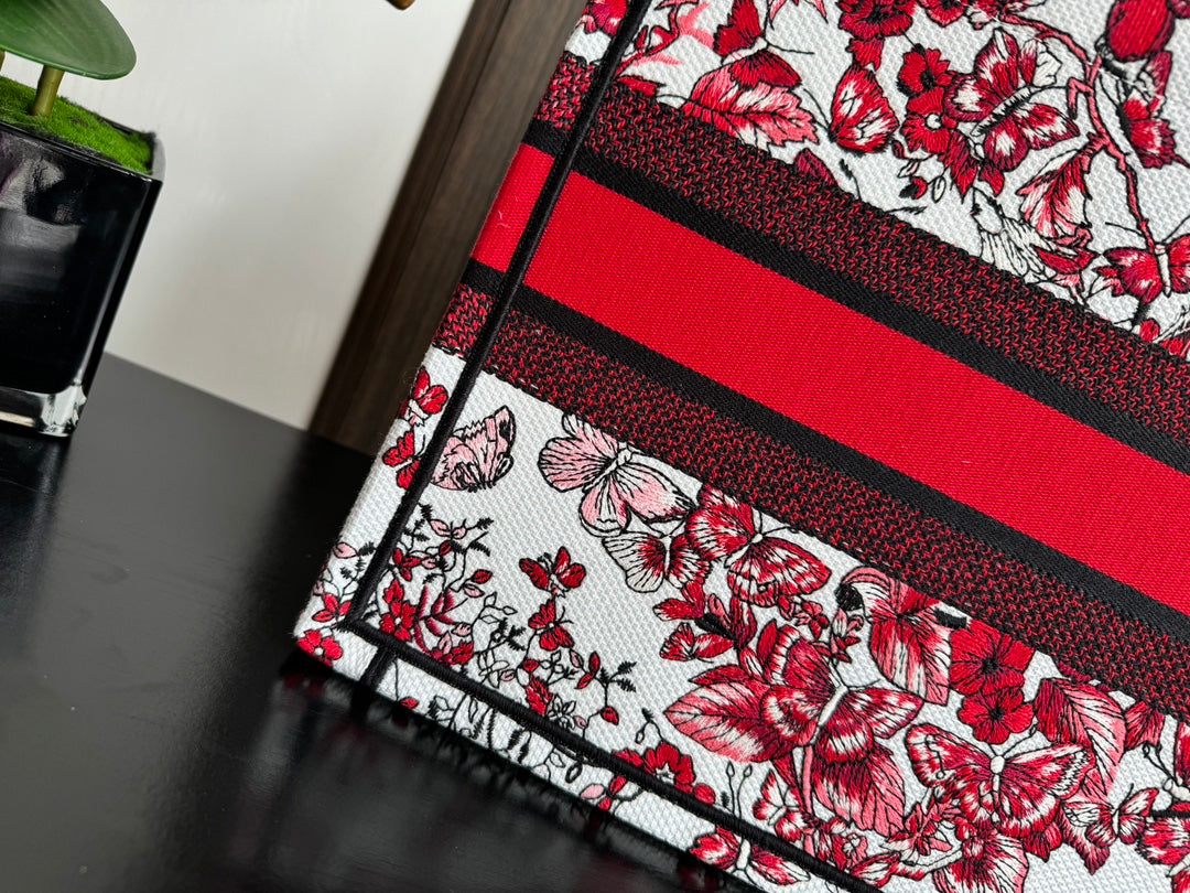Borsa media per CD e libri, 36 cm, ricamo a farfalla con cuore bianco e rosso