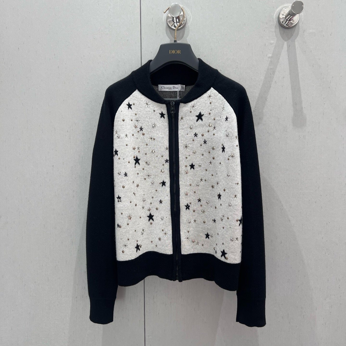 CD 25 Cardigan girocollo nero bianco cashmere 210860