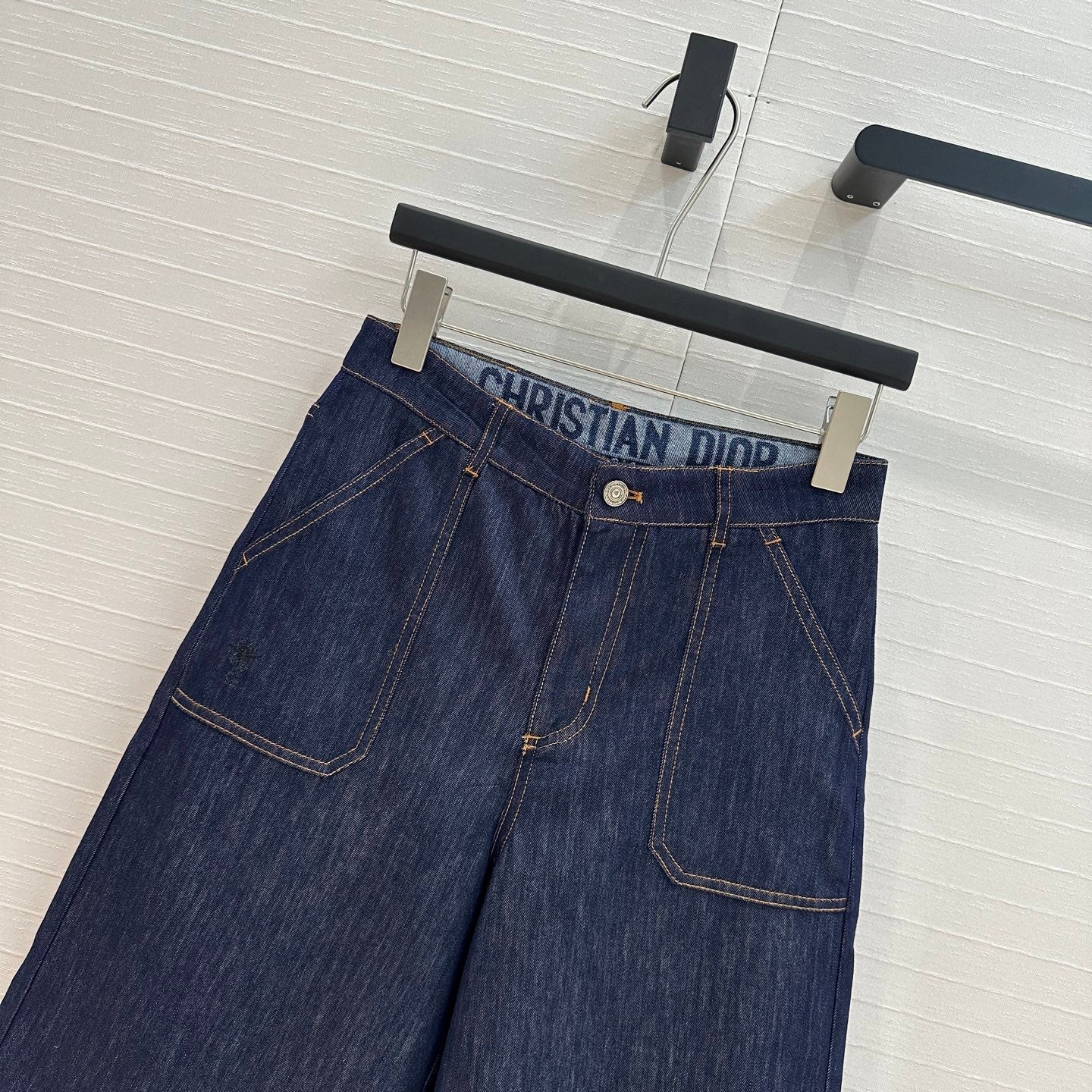 CD 25 Pantaloni dritti a mezza lunghezza in cotone blu