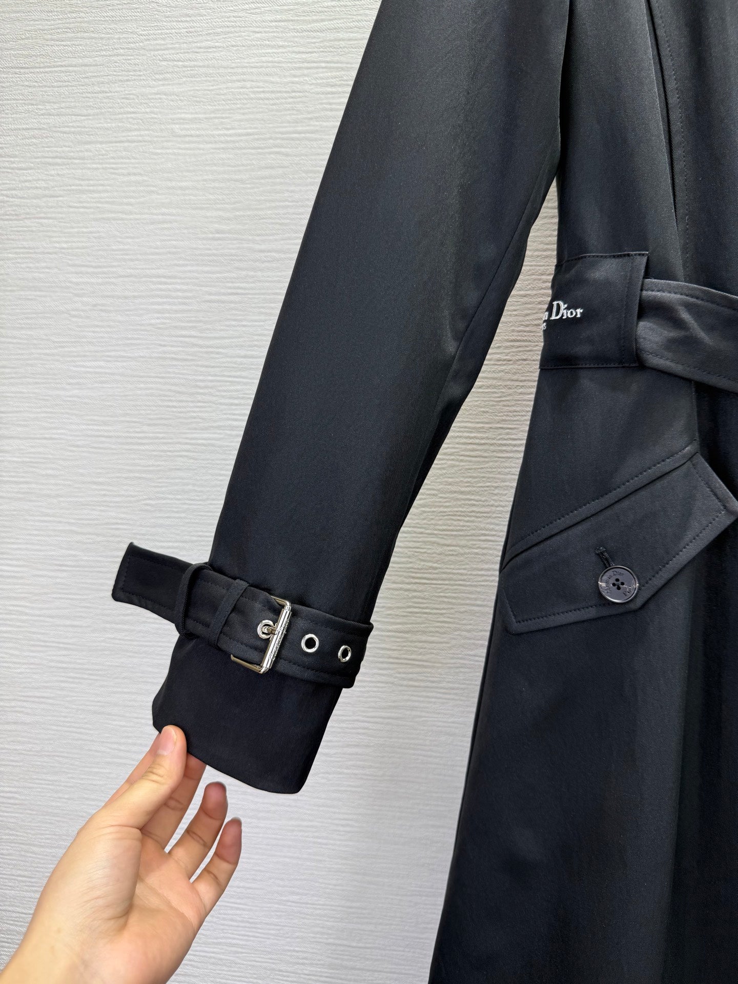 CD 25SS Trench lungo con colletto borchiato e ricamo ape in cotone nero 306542