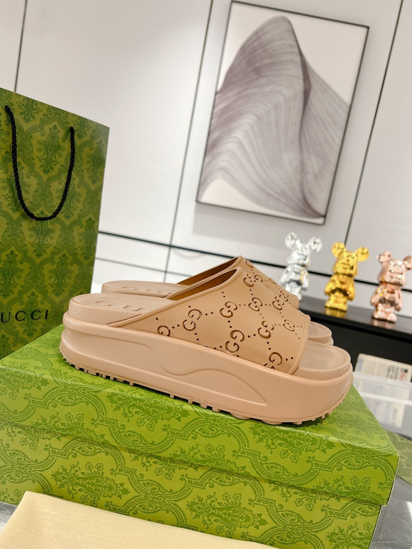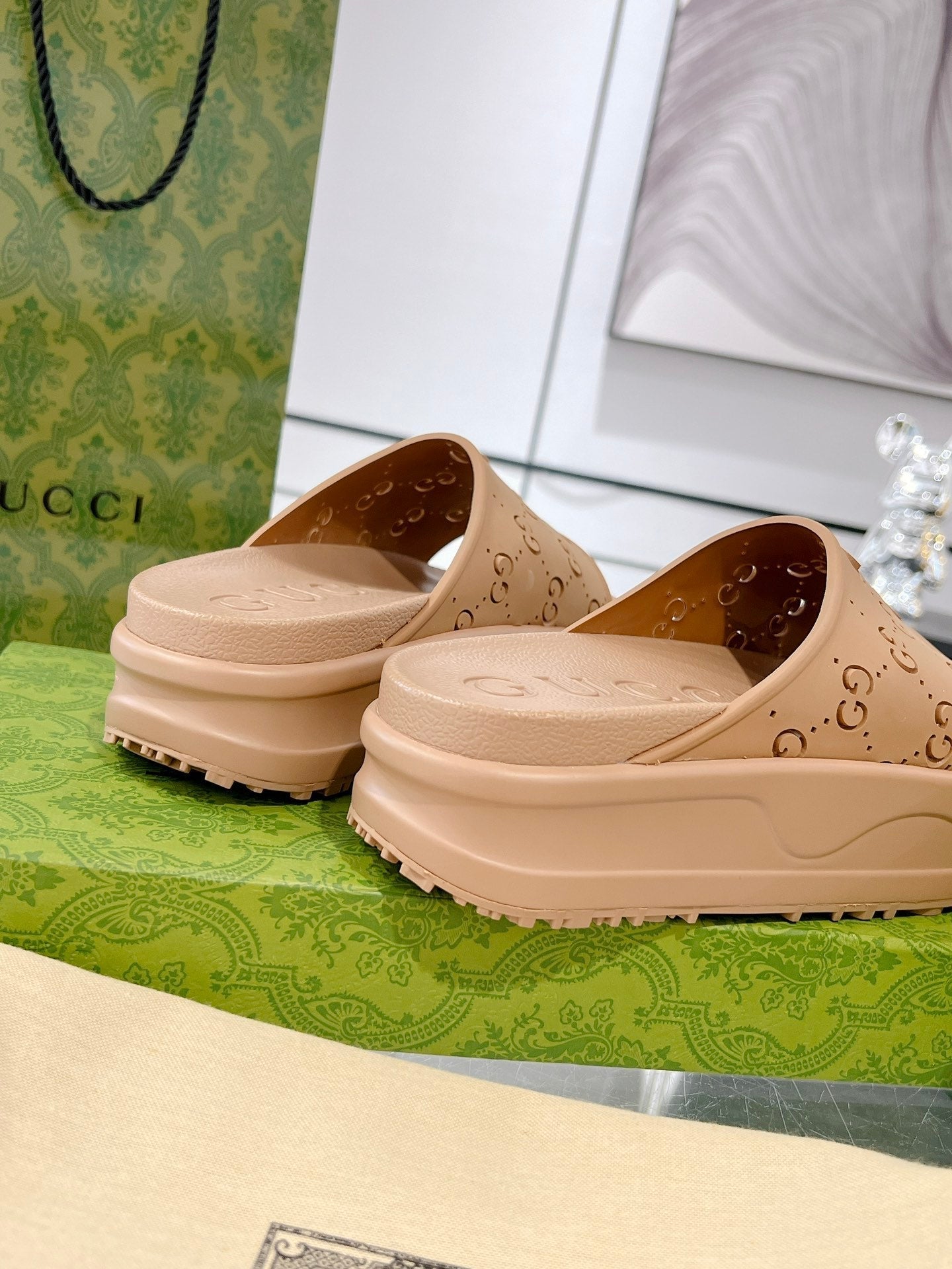 Sandalo GC 25 Monogram Slide da 50 mm in pelle di vacchetta marrone 292395