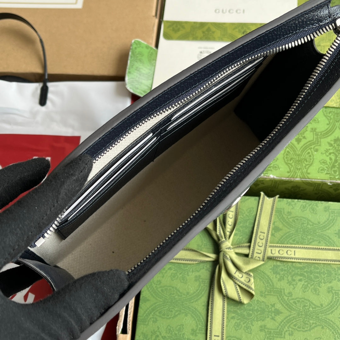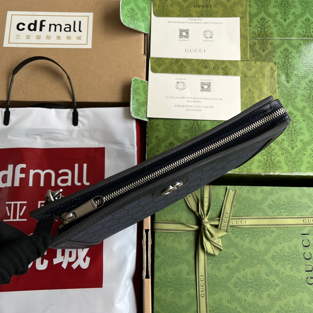 BORSA OPHIDIA 26 IN TELA MONOGRAMMA BLU SCURO E FINITURE IN PELLE DI AGNELLO NERA