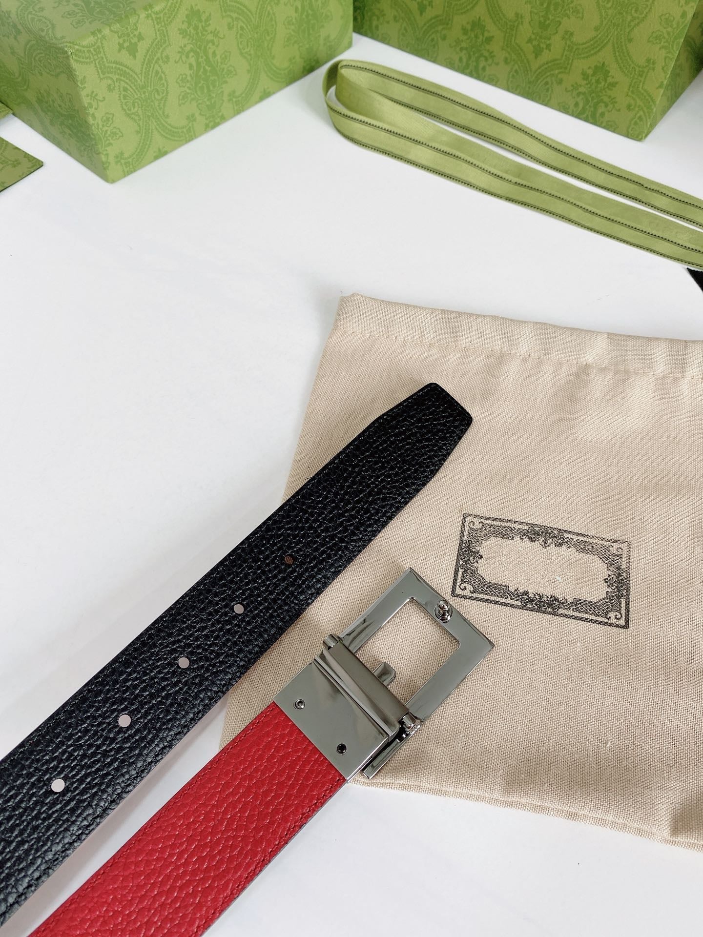 CINTURA G FIBBIA ARGENTO PELLE ROSSA NERA 3,5 CM