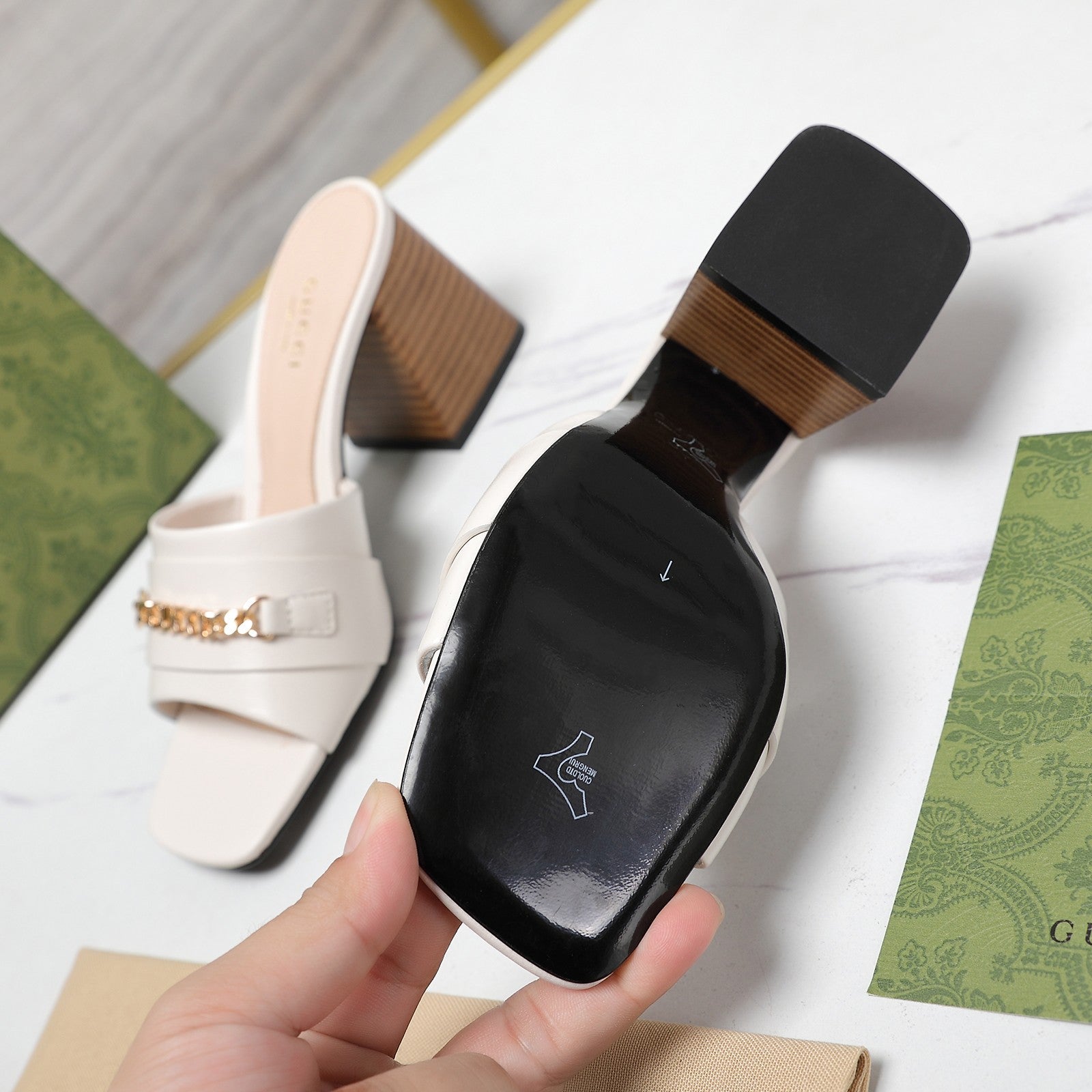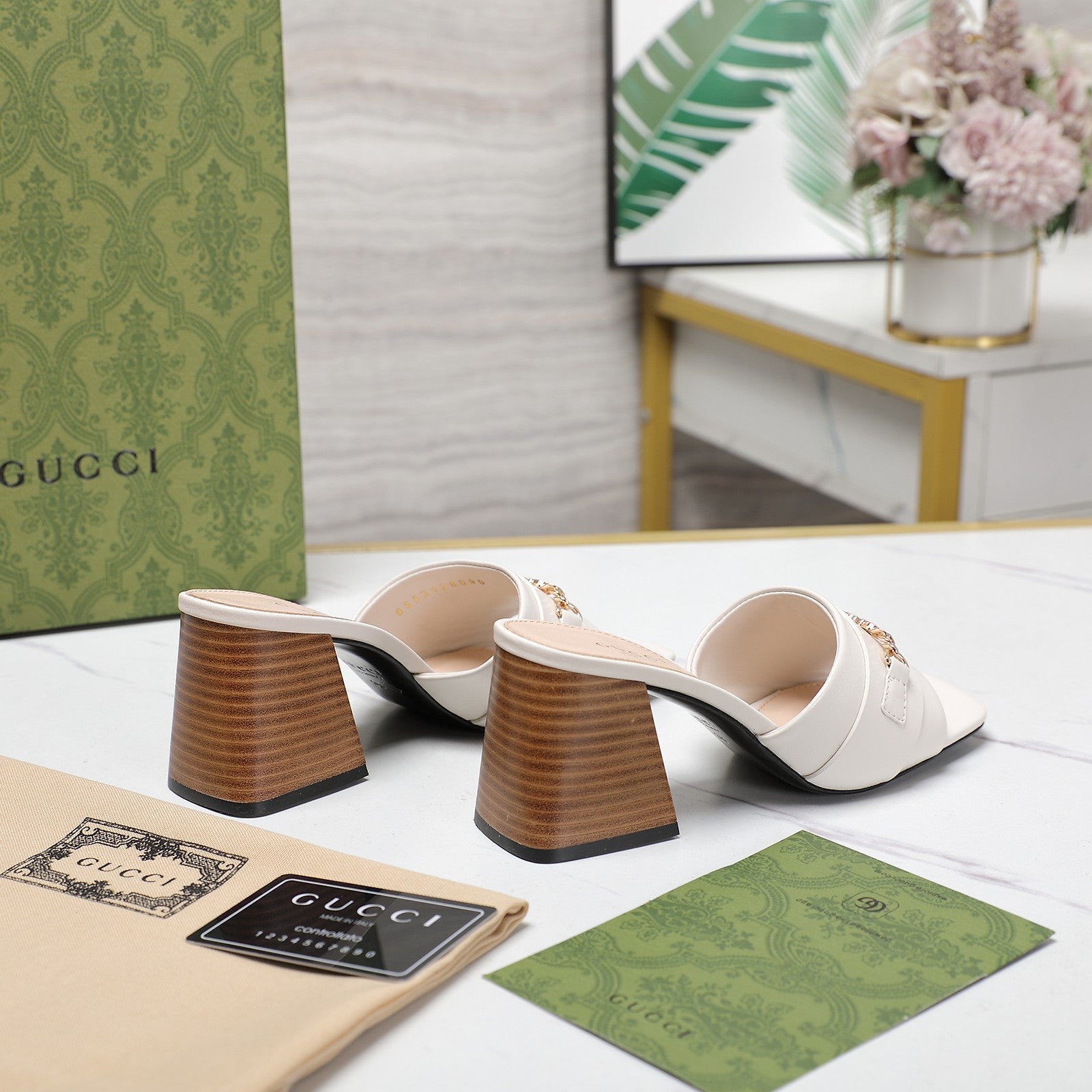 Ciabatte con tacco alto GG bianche