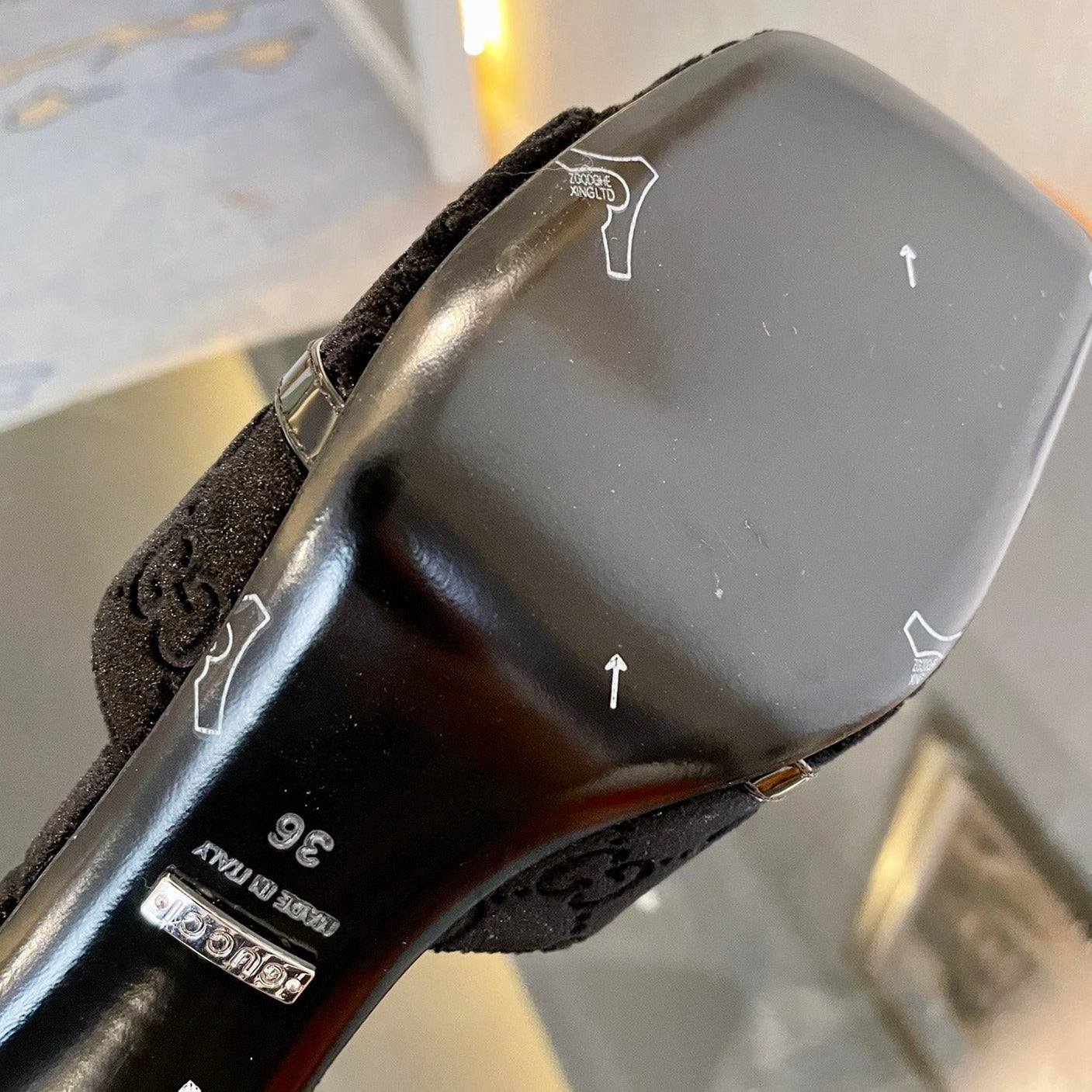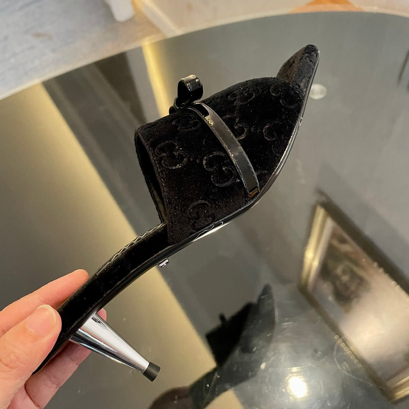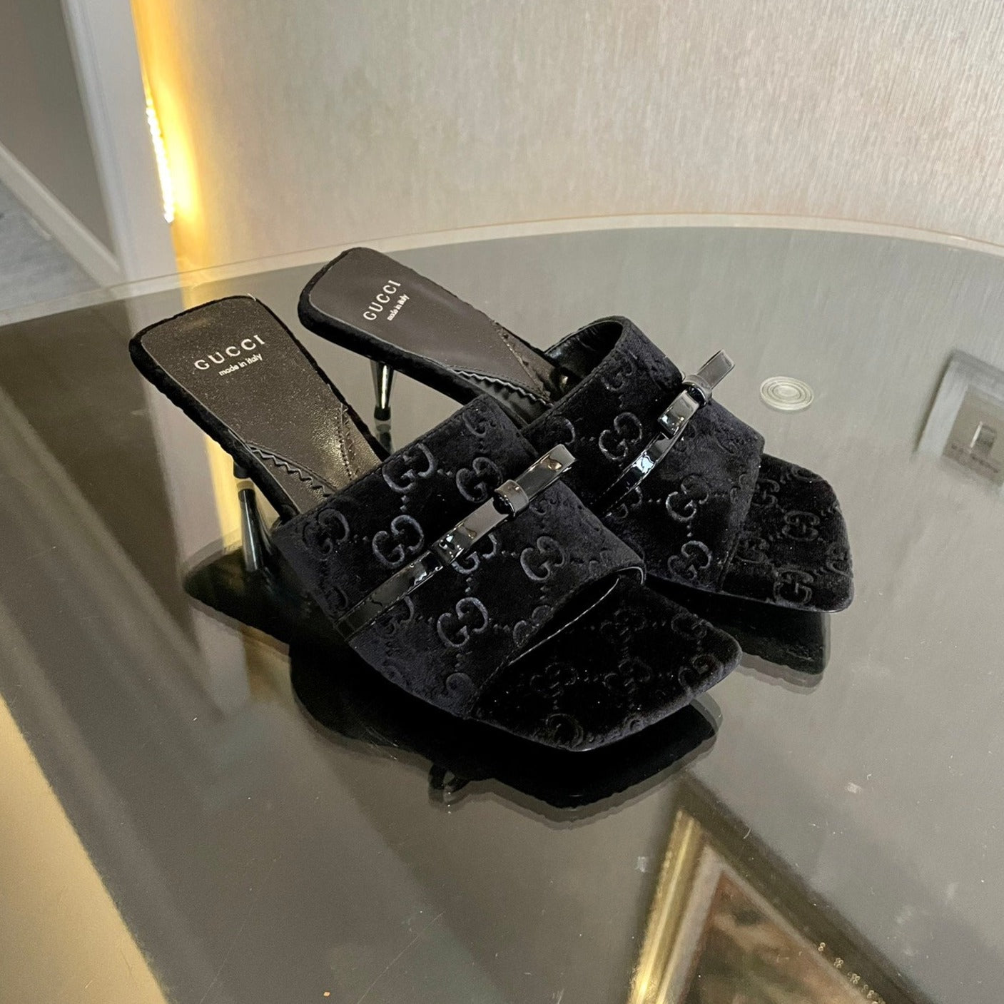 SANDALI CON TACCO ALTO IN VELLUTO GG CON BELLISSIMI DETTAGLI CON LOGO NERO