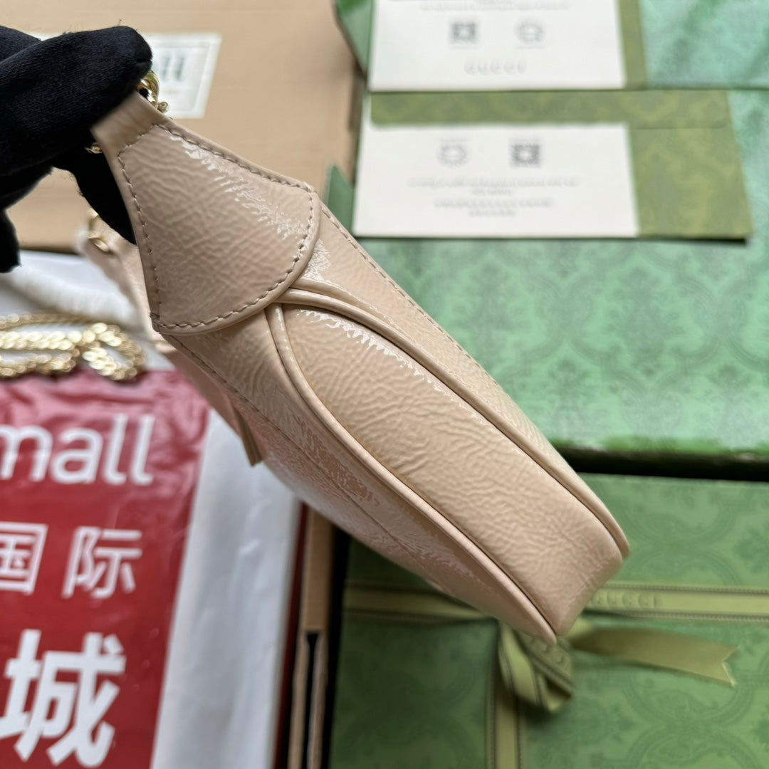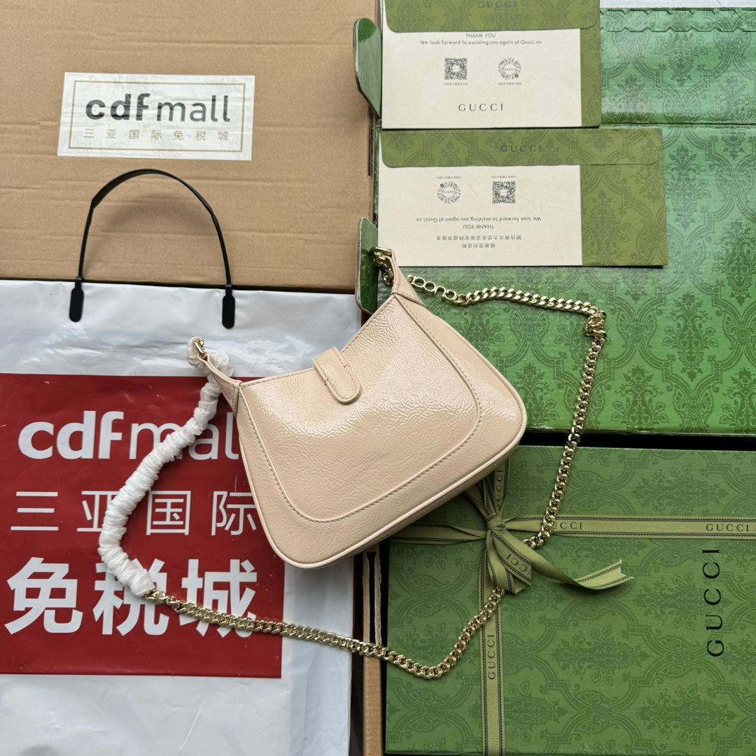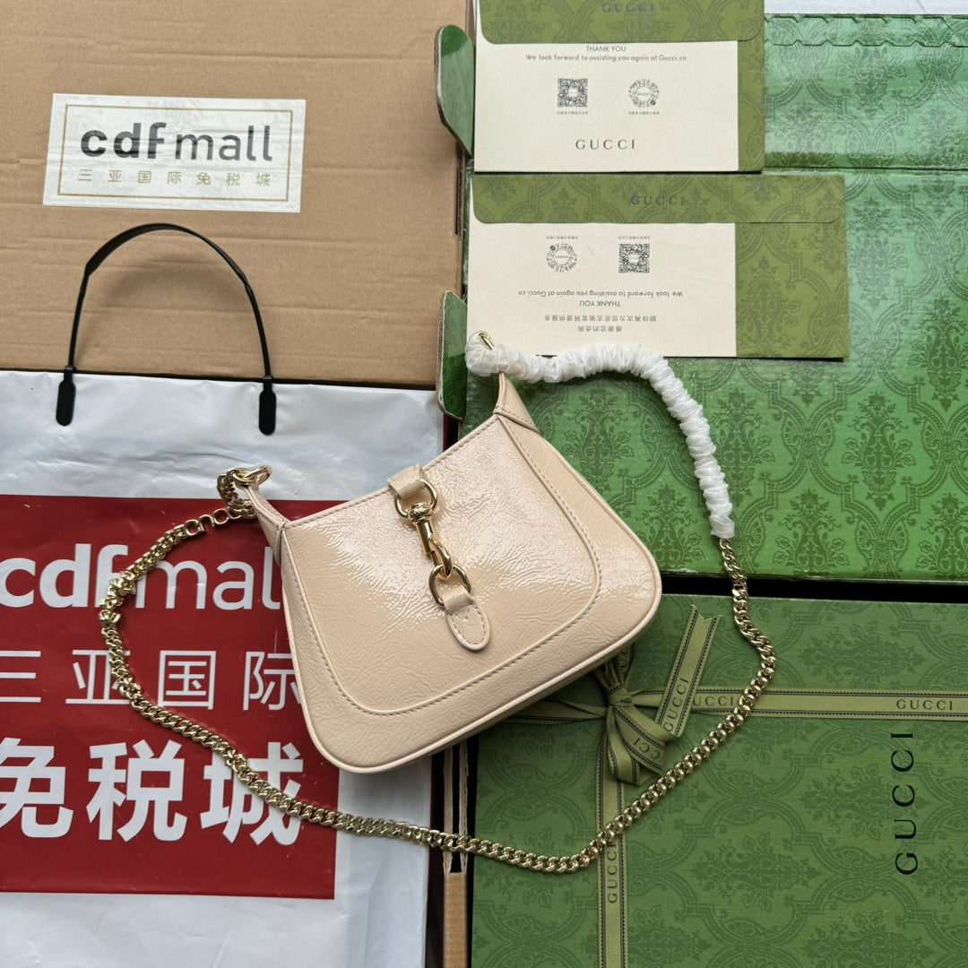 BORSA MINI JACKIE NOTTE 19 IN PELLE DI VITELLO LACCATA BEIGE SCREPOLATA E FERRAMENTA ORO