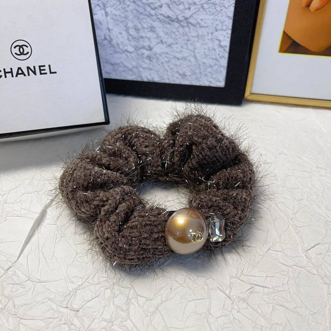 Elastico per capelli in tessuto stropicciato color marrone 151390