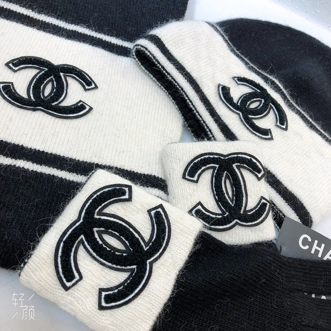 • Set di sciarpa, cappello e guanti in maglia di cashmere