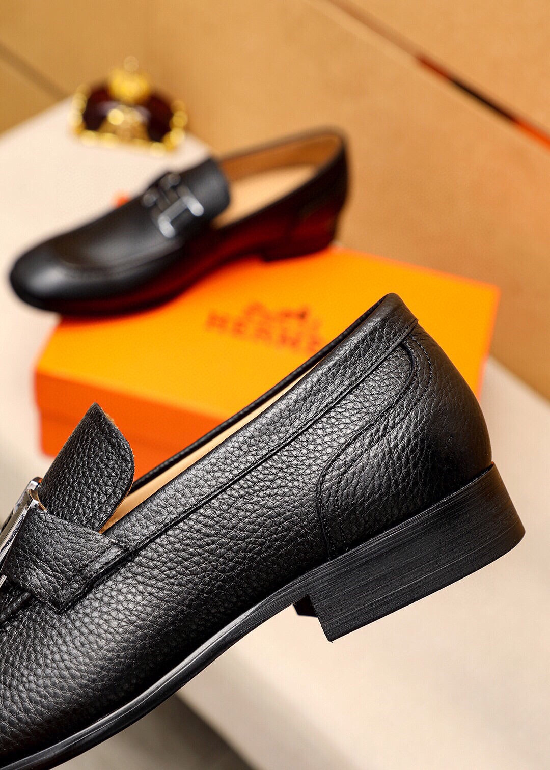 MOCASSINO NERO CON FIBBIA A H IN PELLE DI VITELLO MARTELLATA NERA