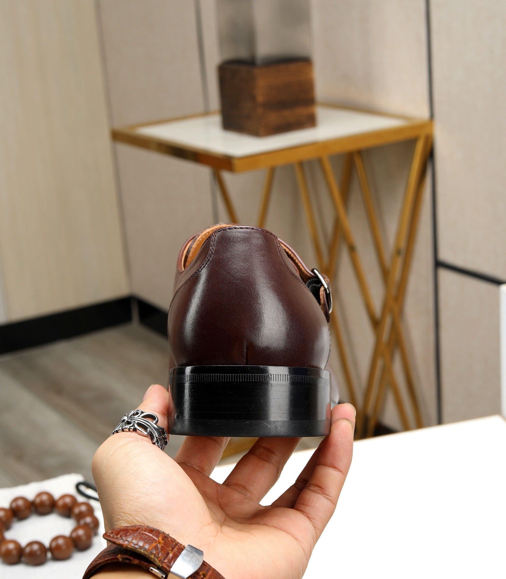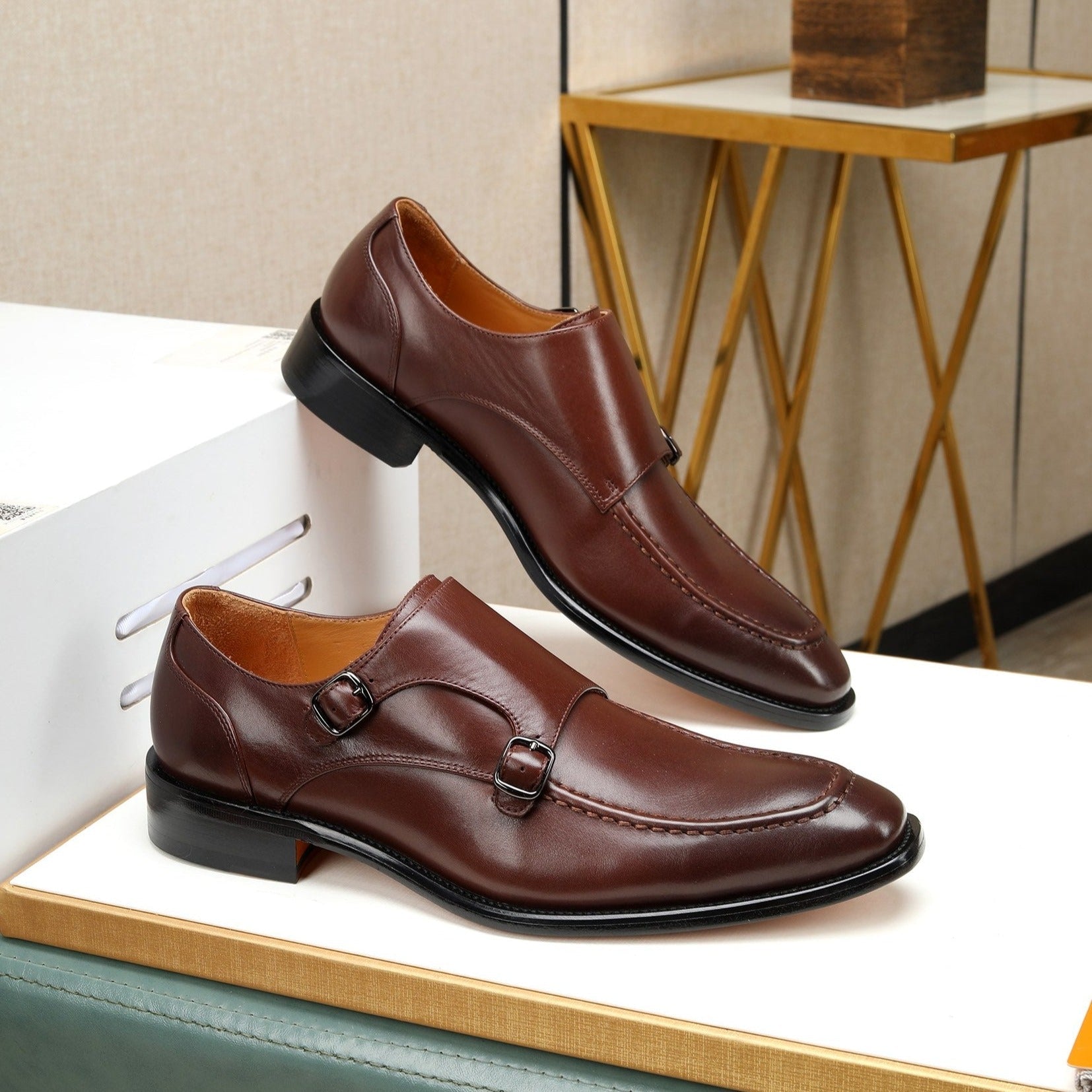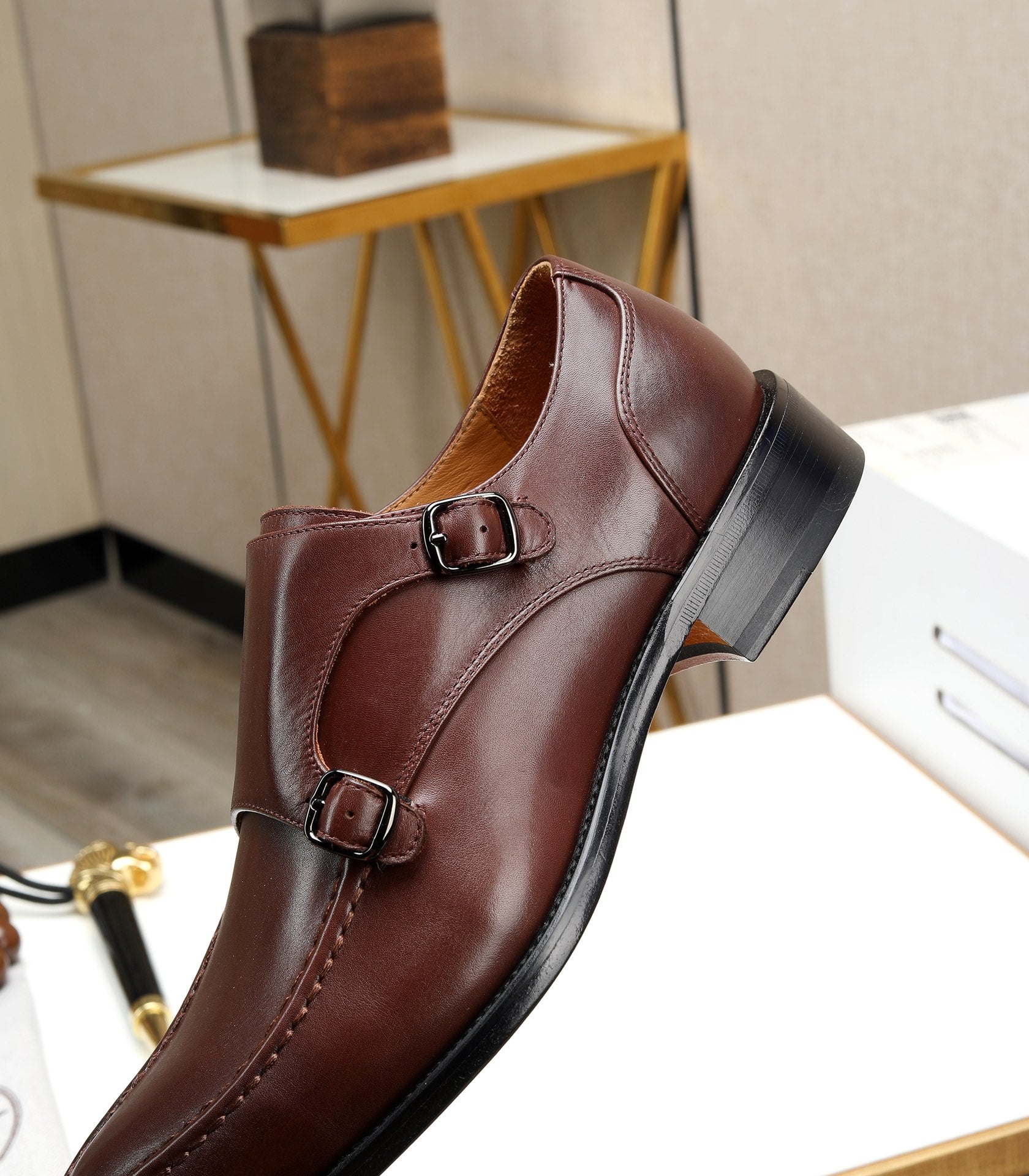 HM DOPPIA CINTURINO MONK IN PELLE DI VITELLO RUSSET