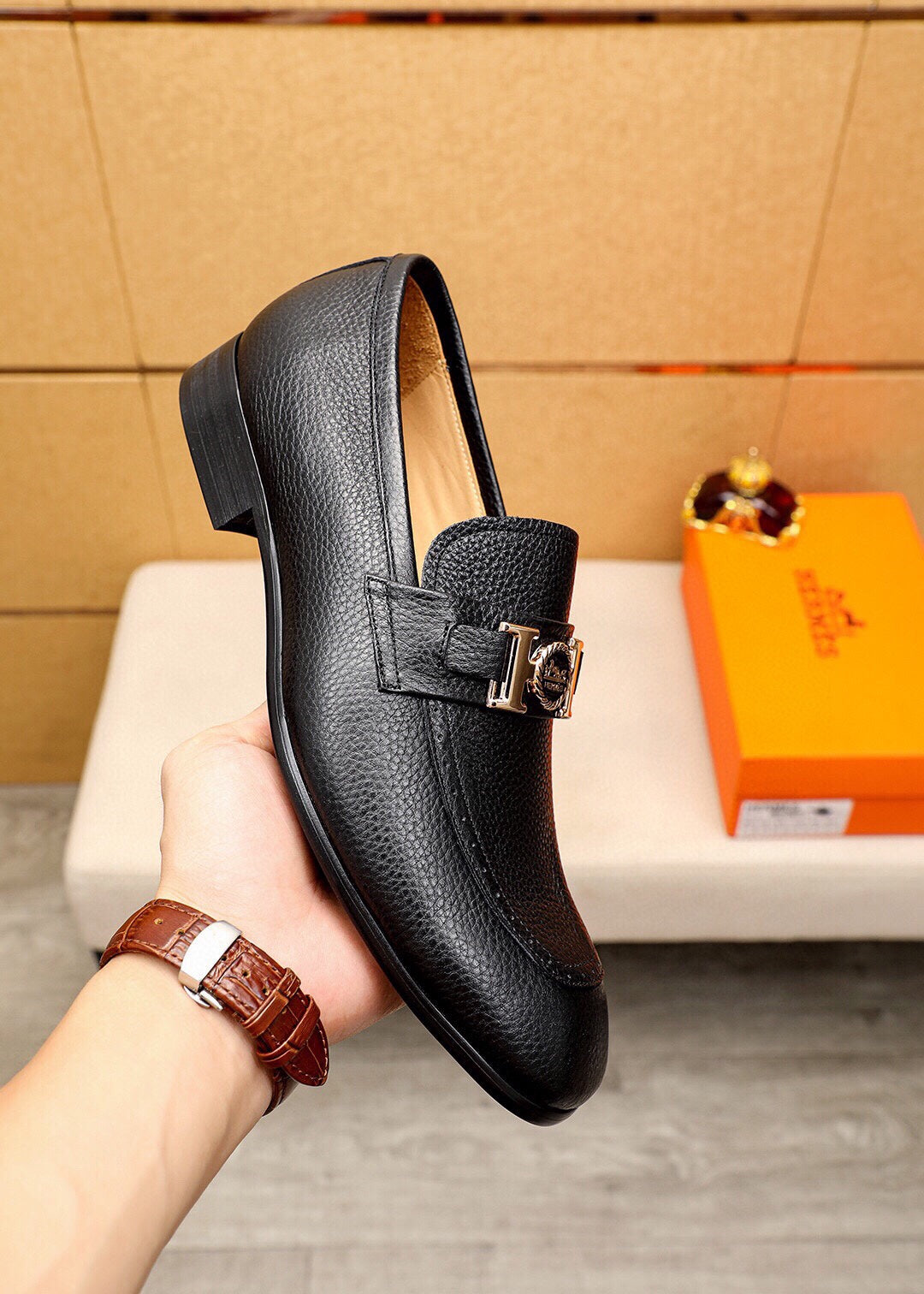 MOCASSINO HM GOLD CON FIBBIA A H IN PELLE DI VITELLO MARTELLATA NERA