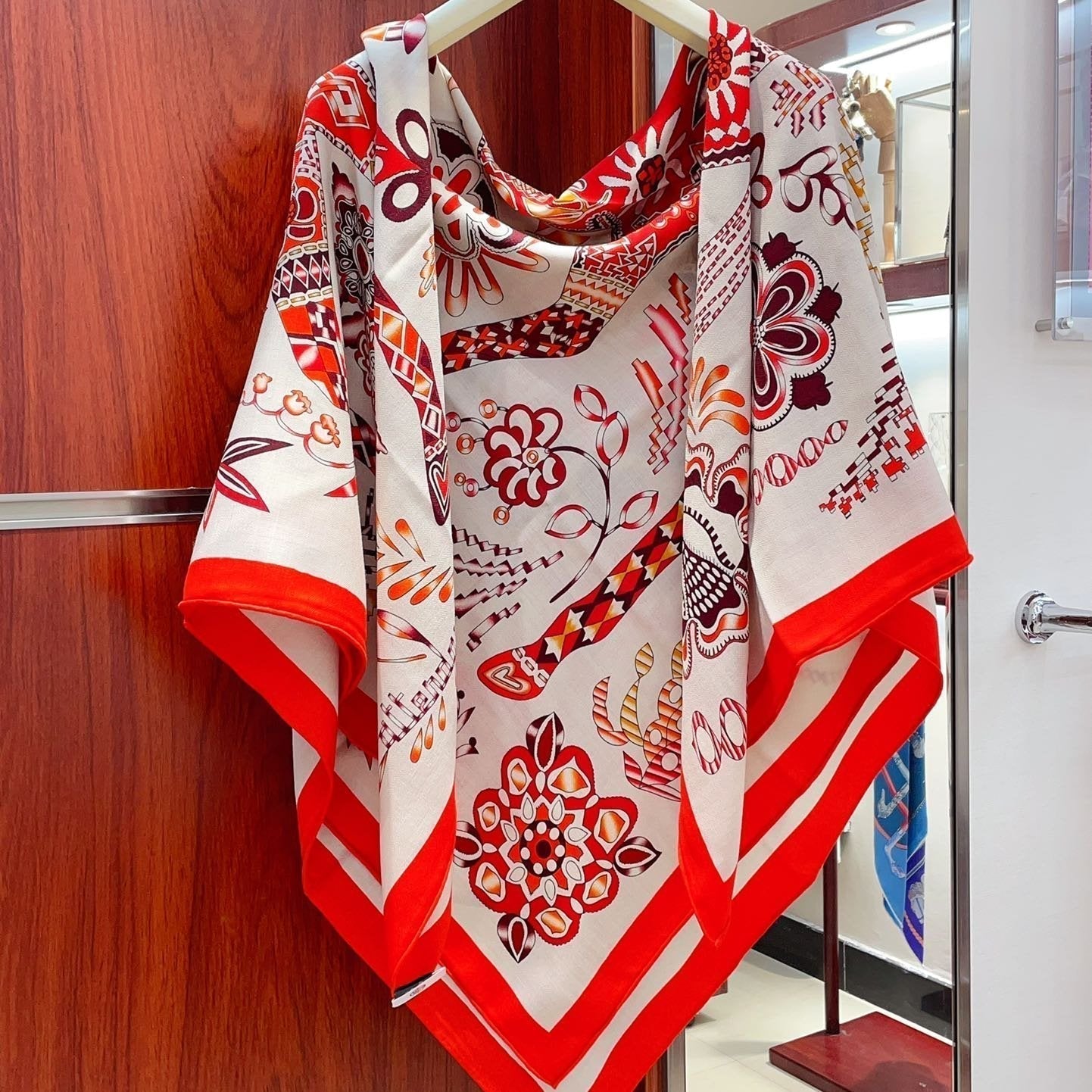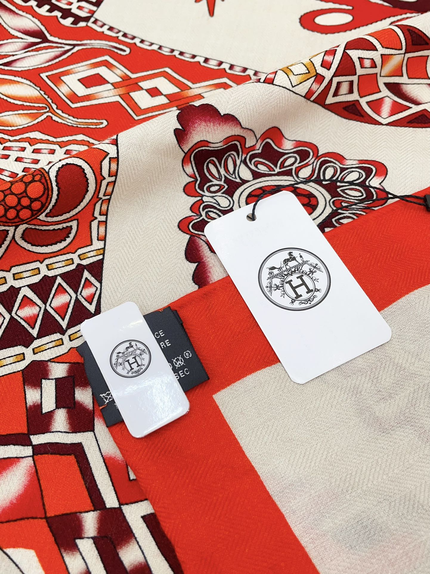 En Attendant Ulysse Scialle 140 CM In Cashmere E Seta Colorati Rossi 294496