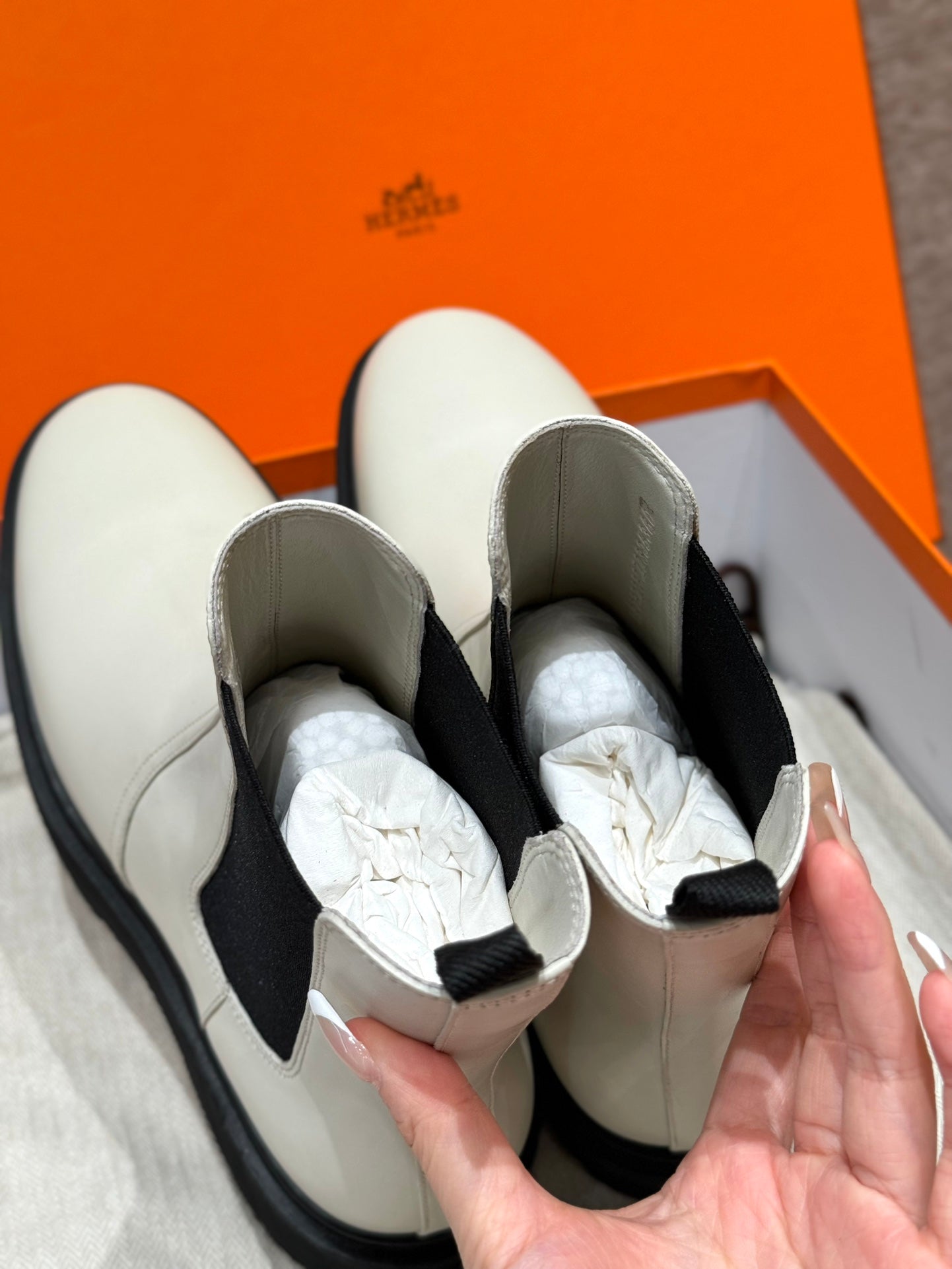 Stivaletto HM Harrow 50MM in pelle di vacchetta bianca 114780
