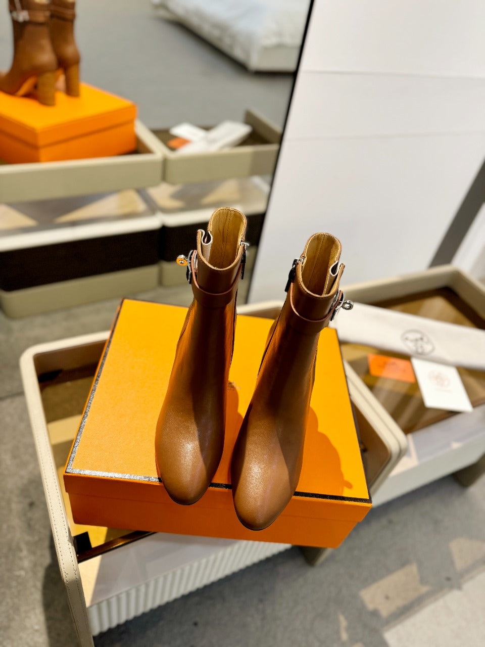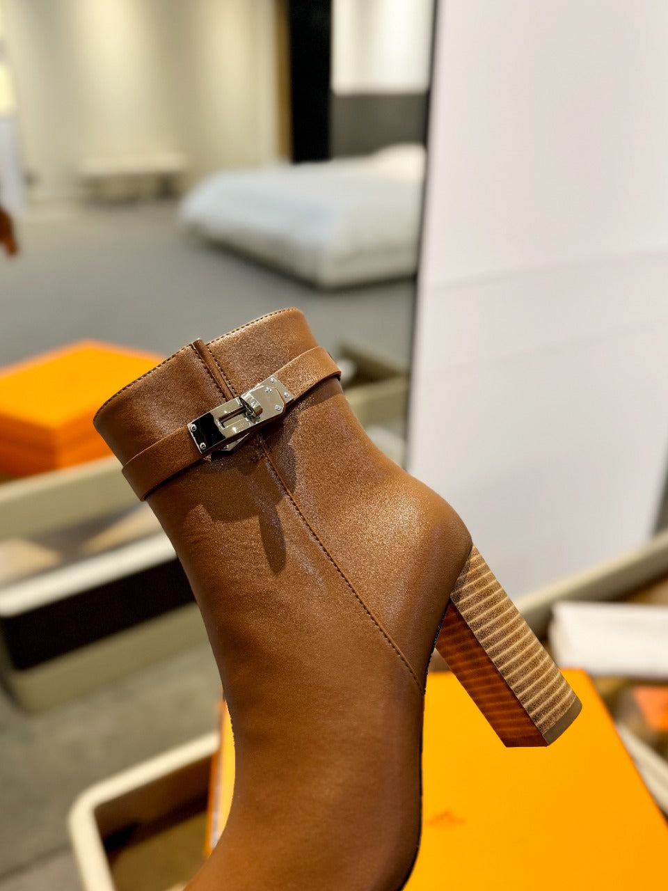 Stivaletto HM Saint Germain 85mm in pelle di vacchetta marrone 961645