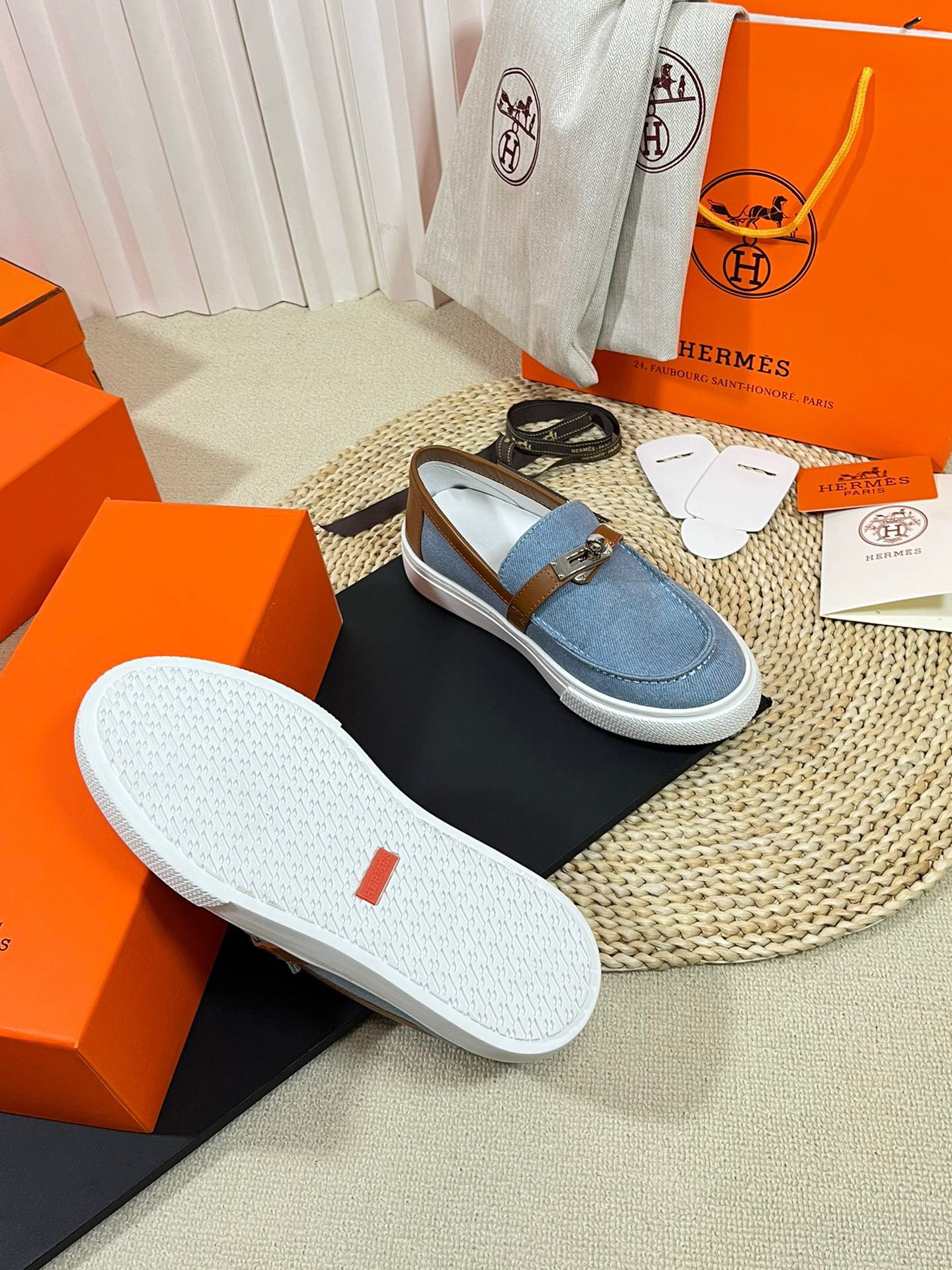Mocassino in denim HM blu marrone in pelle di vacchetta 317047