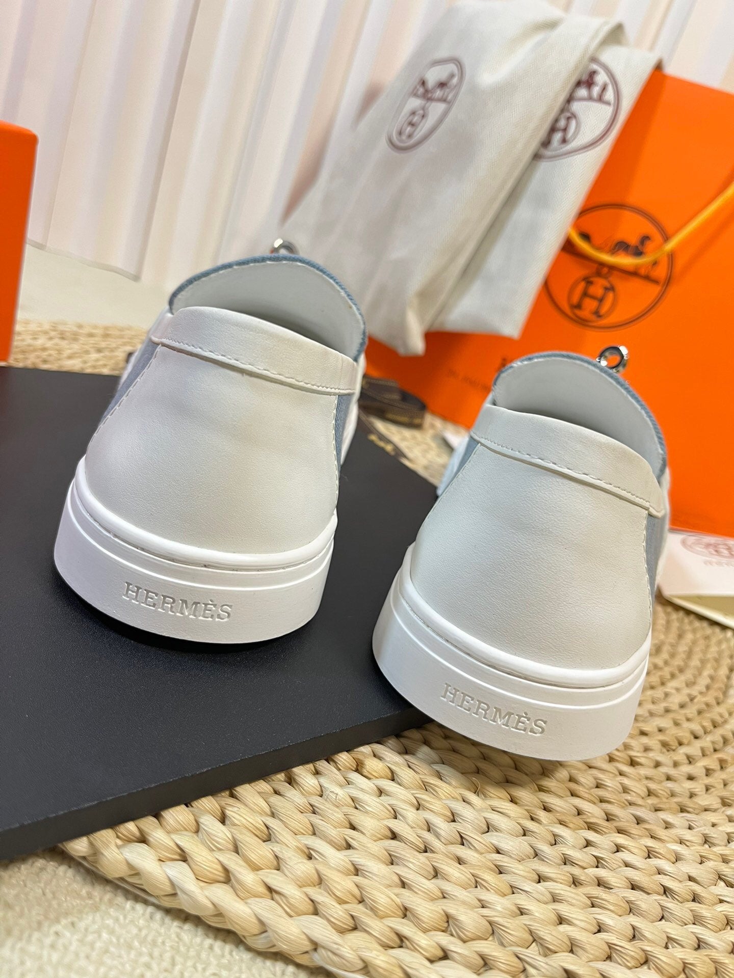 Mocassino in denim HM blu bianco in pelle di vacchetta 317048
