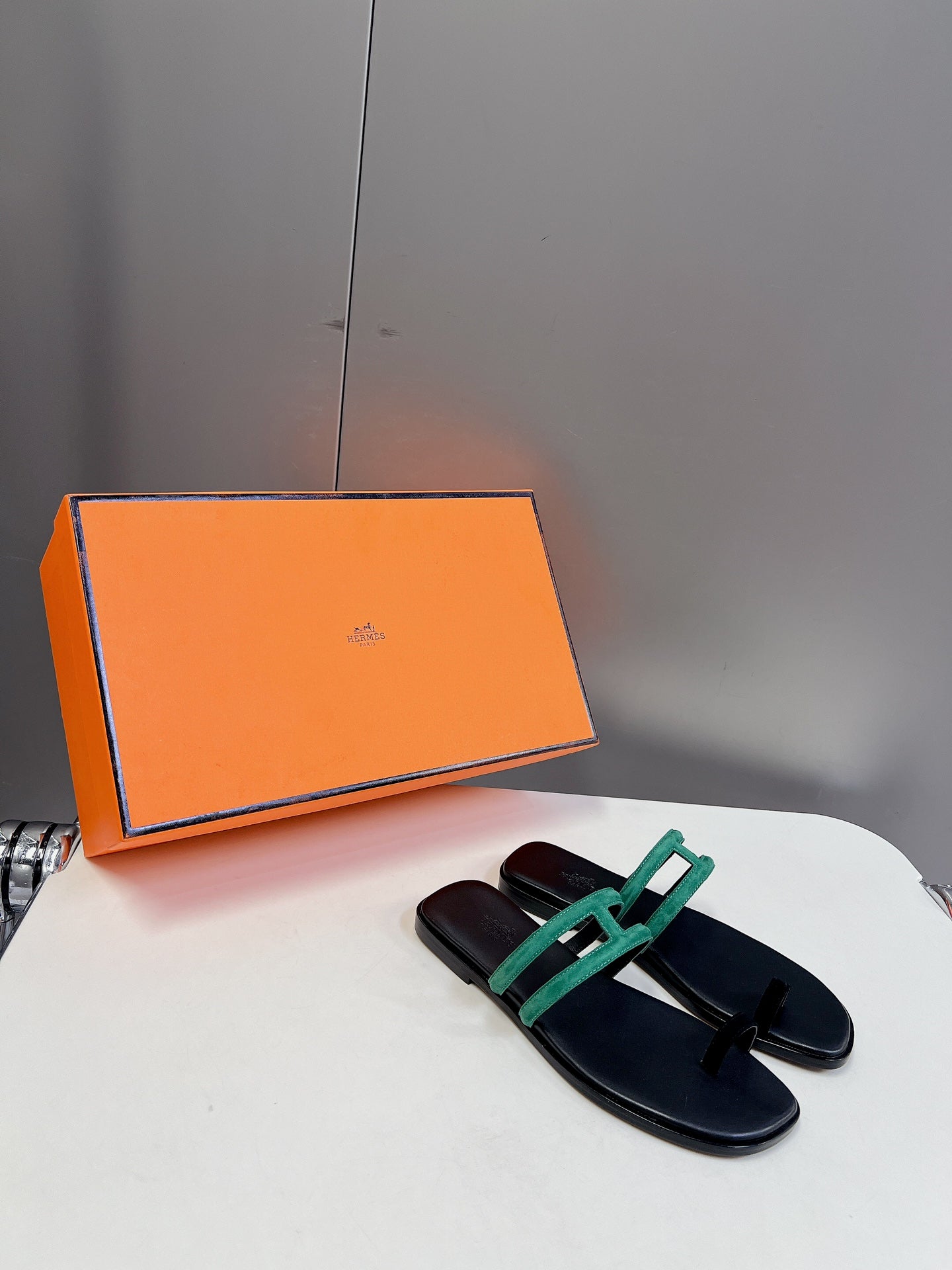 Sandali Georgia in pelle scamosciata color verde acqua e vitello nero