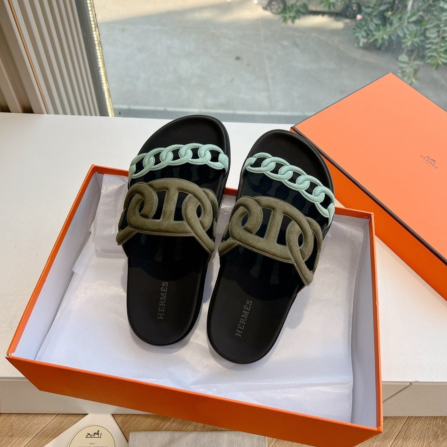 Sandalo HM 25 Extra in pelle di vitello color kaki e blu Tiffany