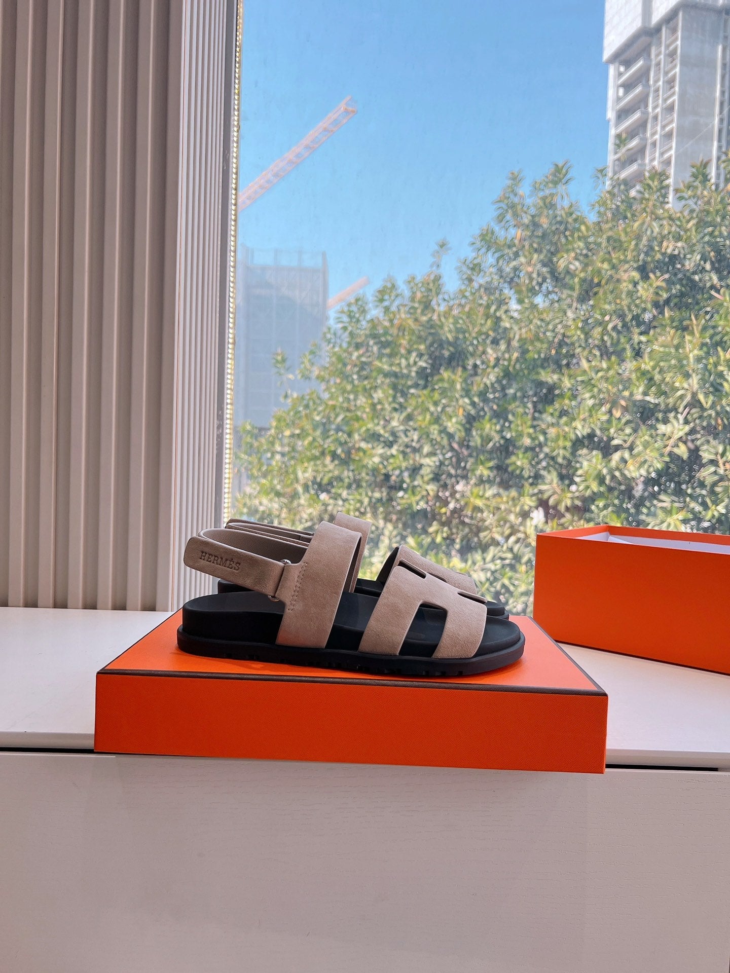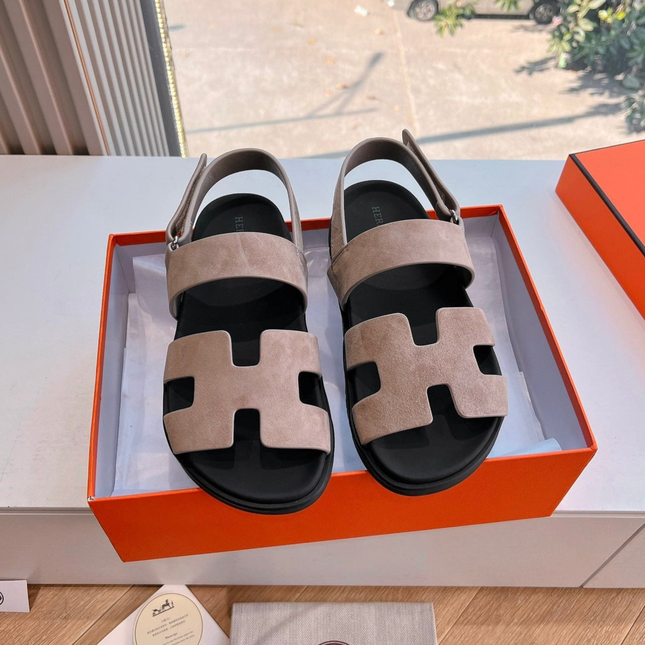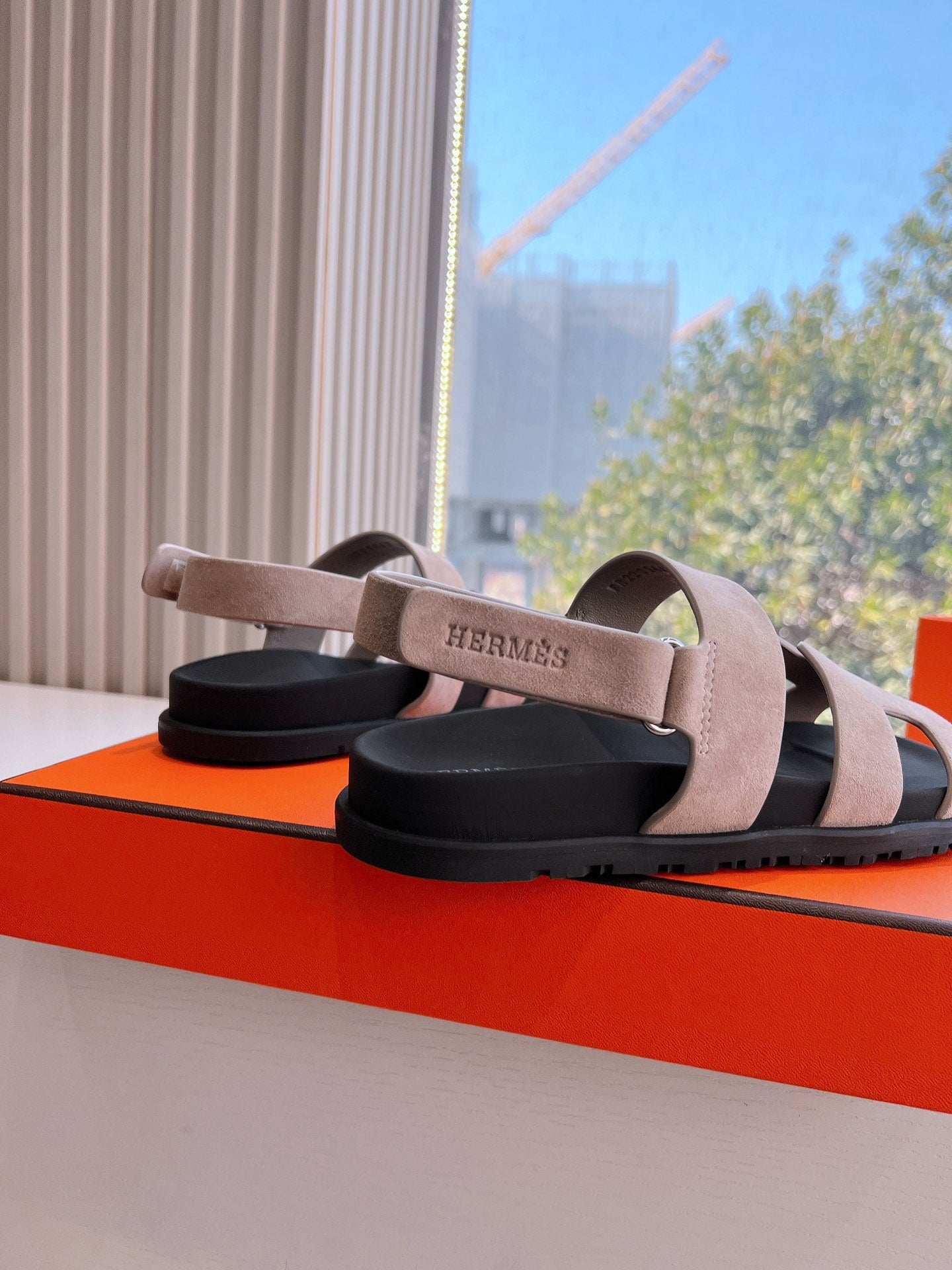 Sandalo HM 25 Genius in pelle scamosciata marrone rosa e vitello nero