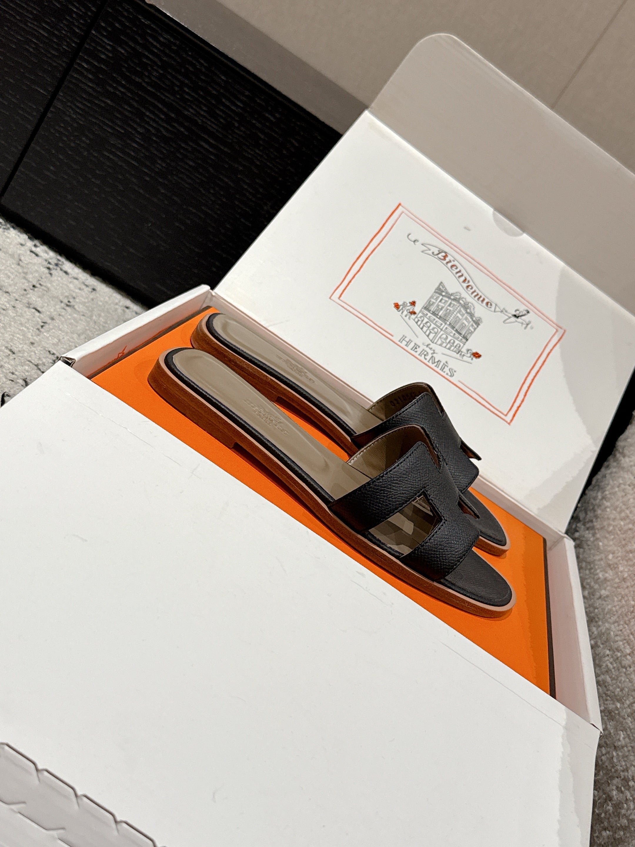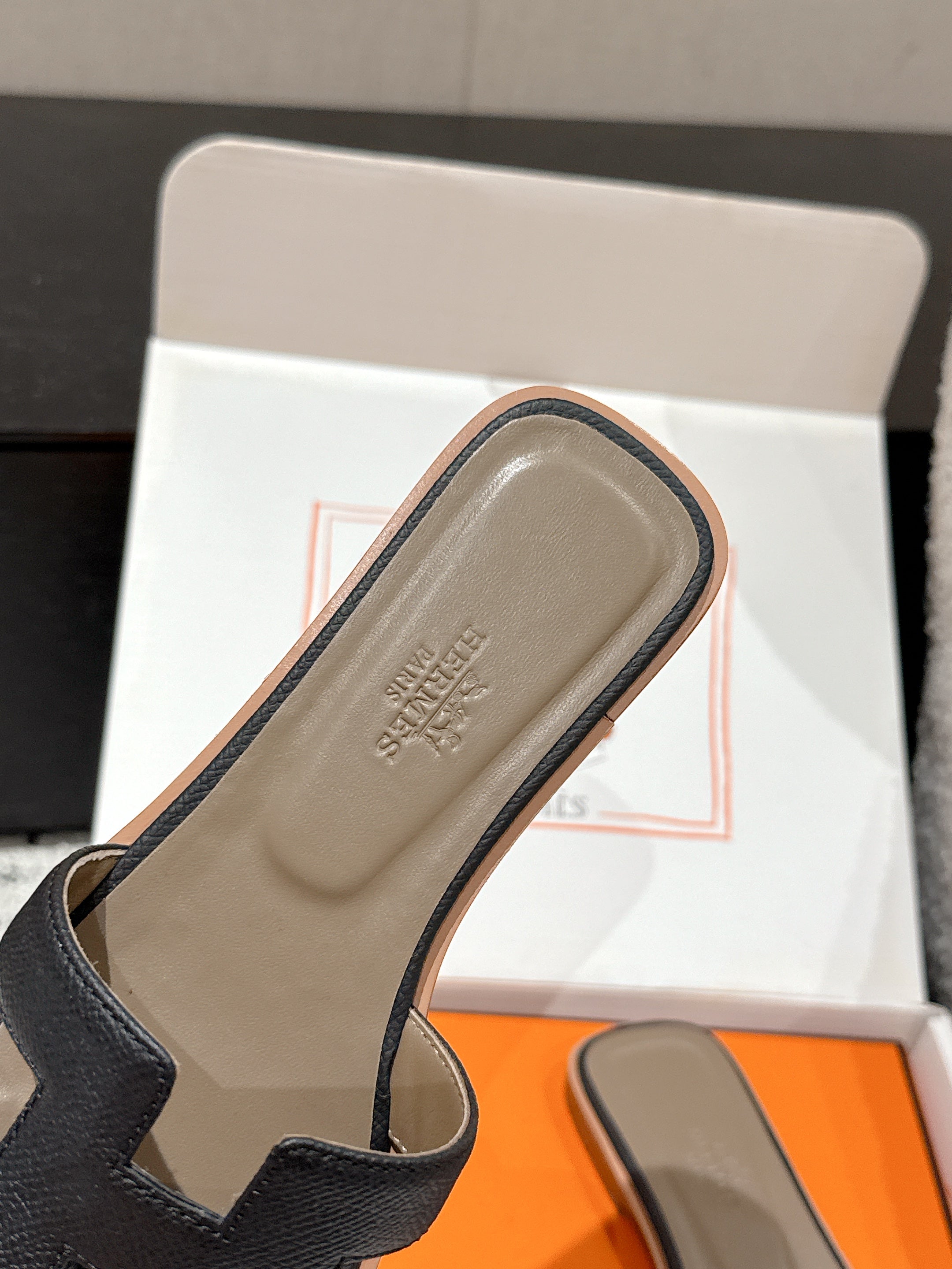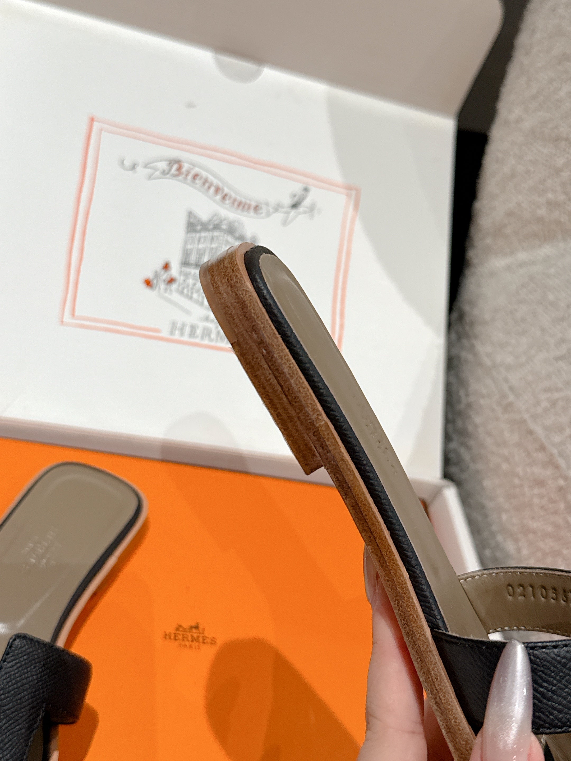 Sandalo Oran HM 25 Pelle di vitello Epsom Etoupe nera