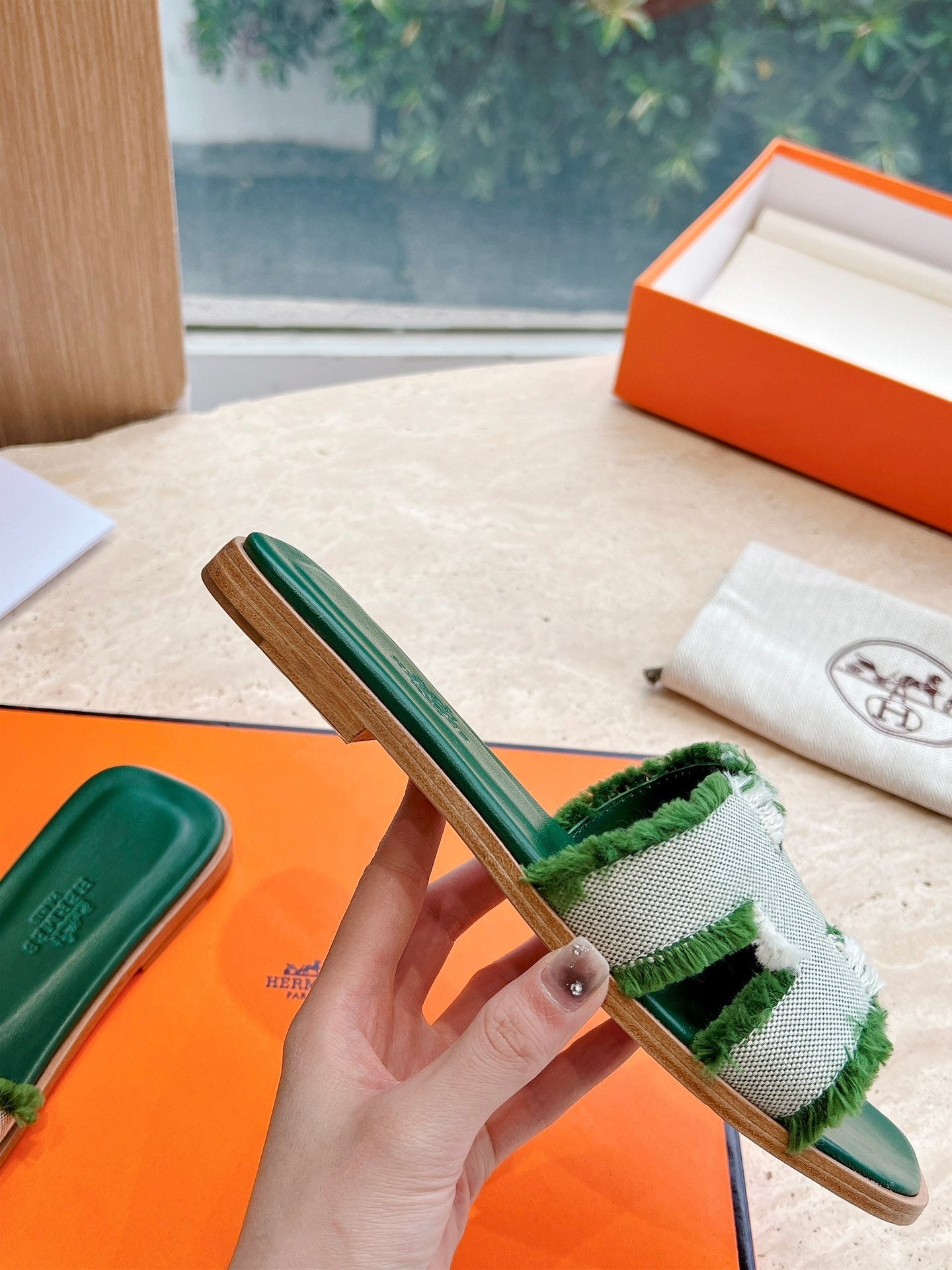 Sandalo HM 25 Oran in pelle di vitello verde denim bianco