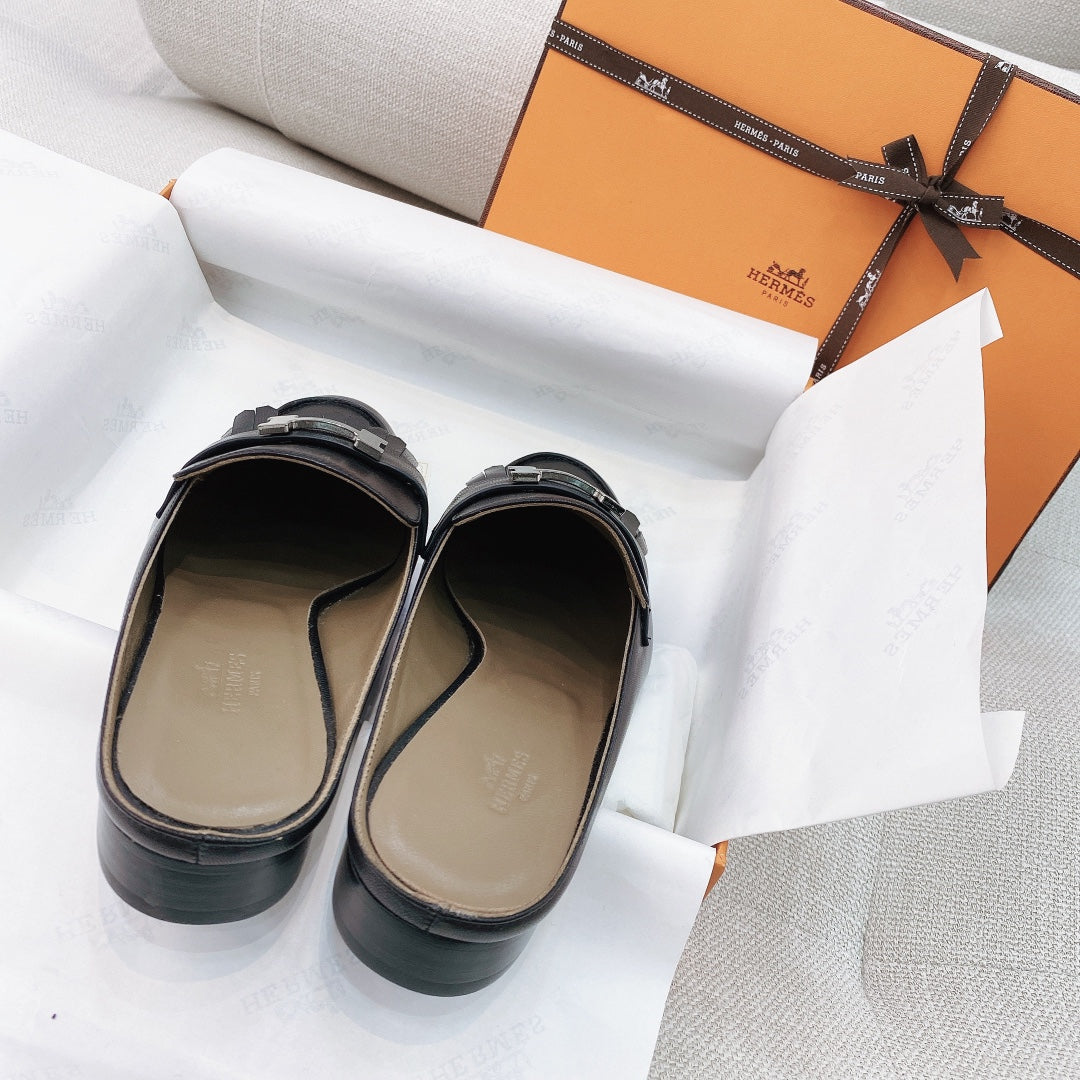 HM Buckle Tassel Mule Pelle di capra nera 348025