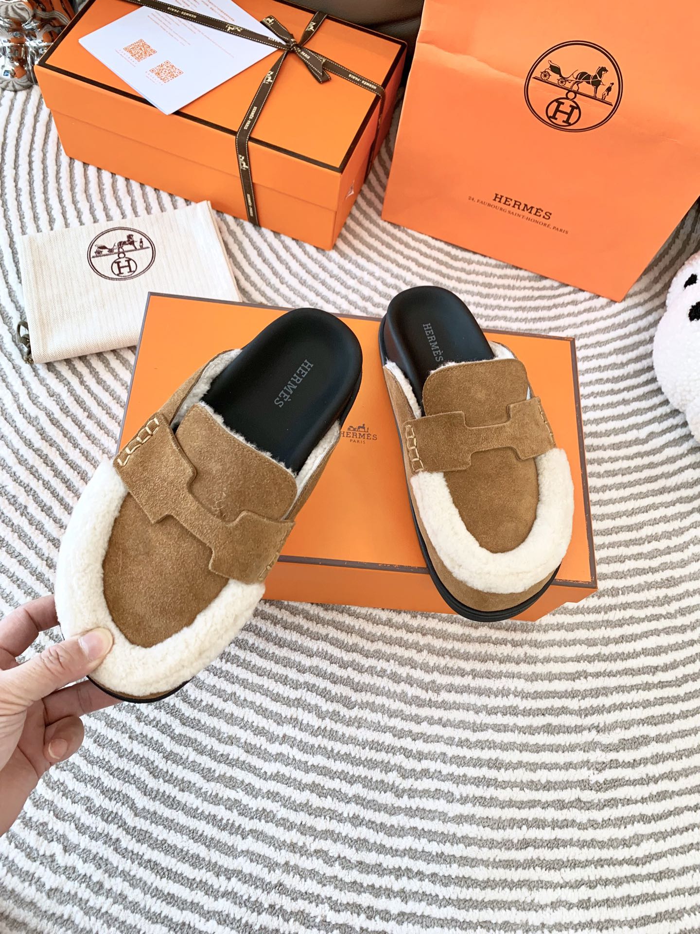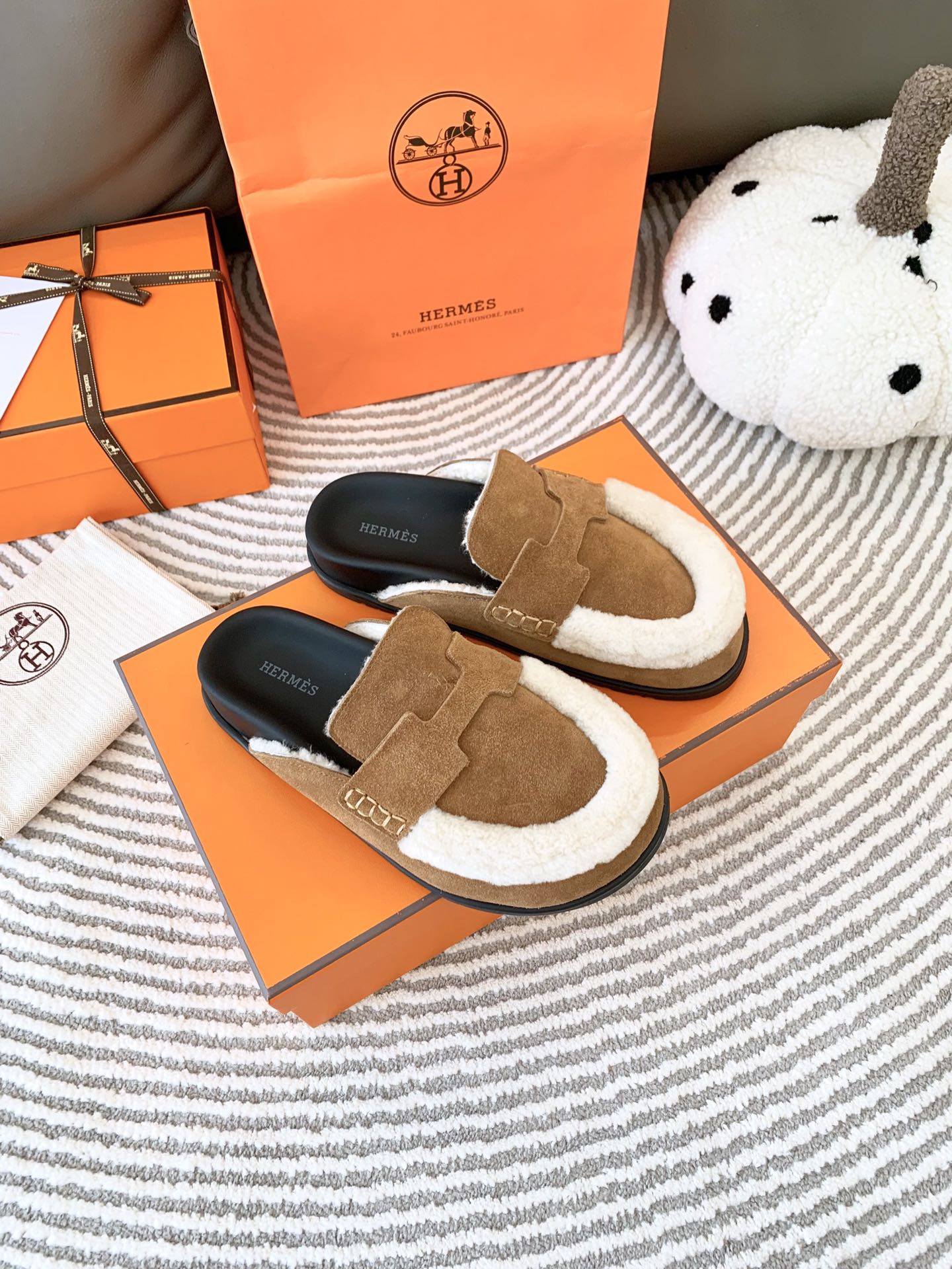 HM Go Mule Marrone Mix Pelle Scamosciata Bianca Foderata in Pile di Lana 963222