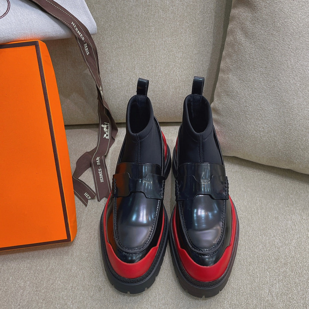 Stivaletto HM in pelle di vacchetta nera e rossa 348003