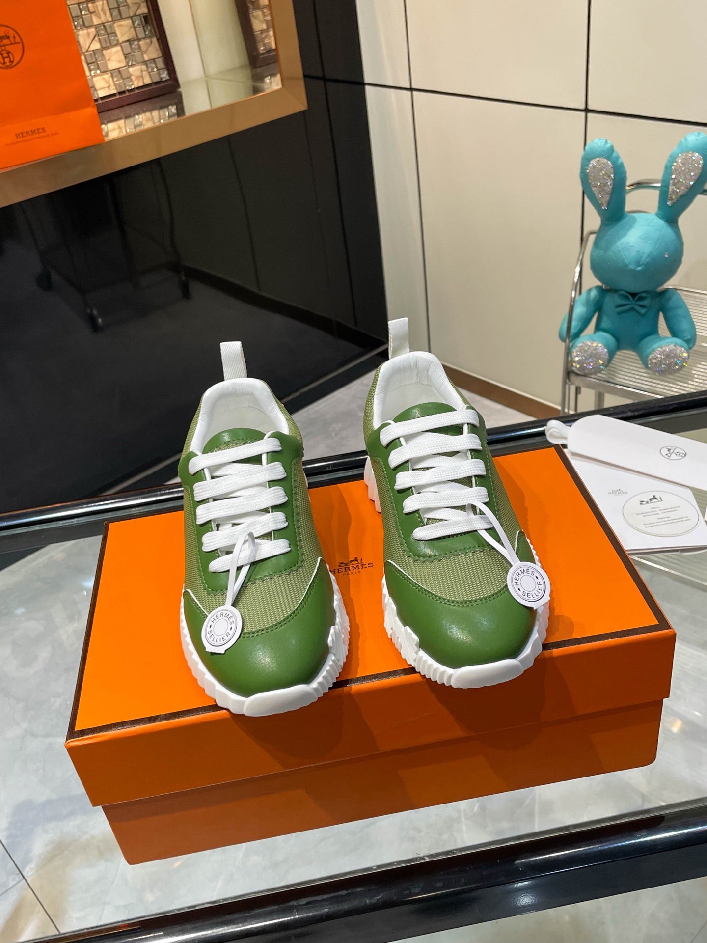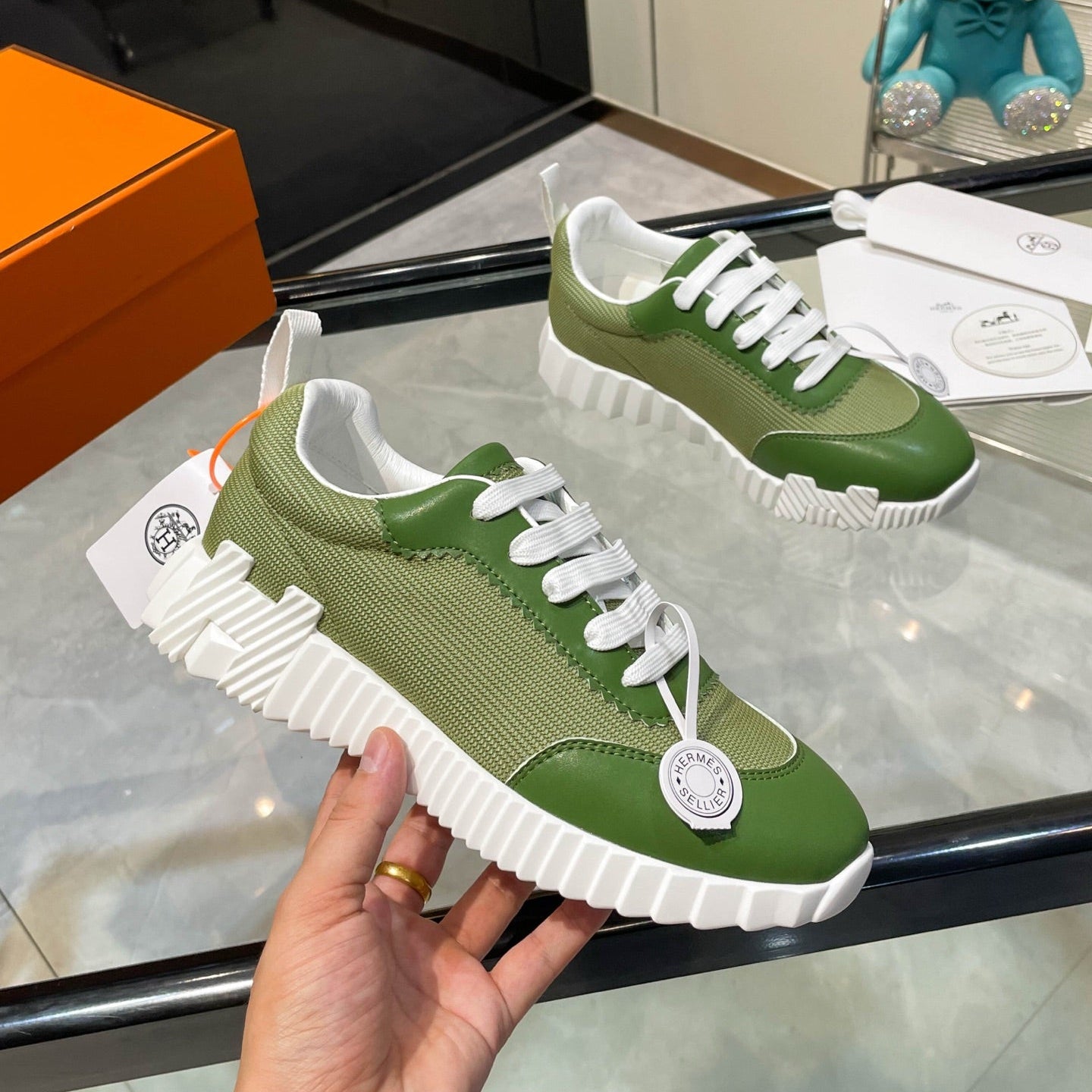 HM Bouncing Sneakers Green Mesh and Sport Goatskin 531342