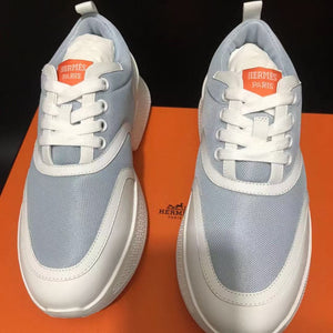 Sneaker HM Giga 50 in tela azzurra, pelle di capra bianca e arancione
