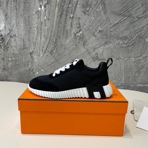 Sneakers HM Bouncing 35 in tela nera, pelle scamosciata bianca, pelle di capra, H, arancione acquamarina