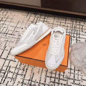 Sneakers HM Bouncing 35 in pelle di capra bianca e pelle scamosciata di capra H arancione