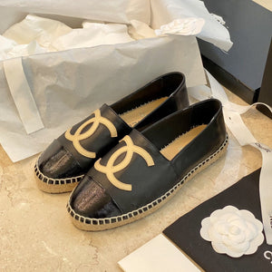 espadrillas in pelle di vitello metallizzata oro e tela nera