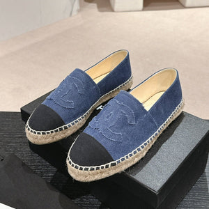 cc espadrillas blu nuvola tessuto pile pelle di vitello